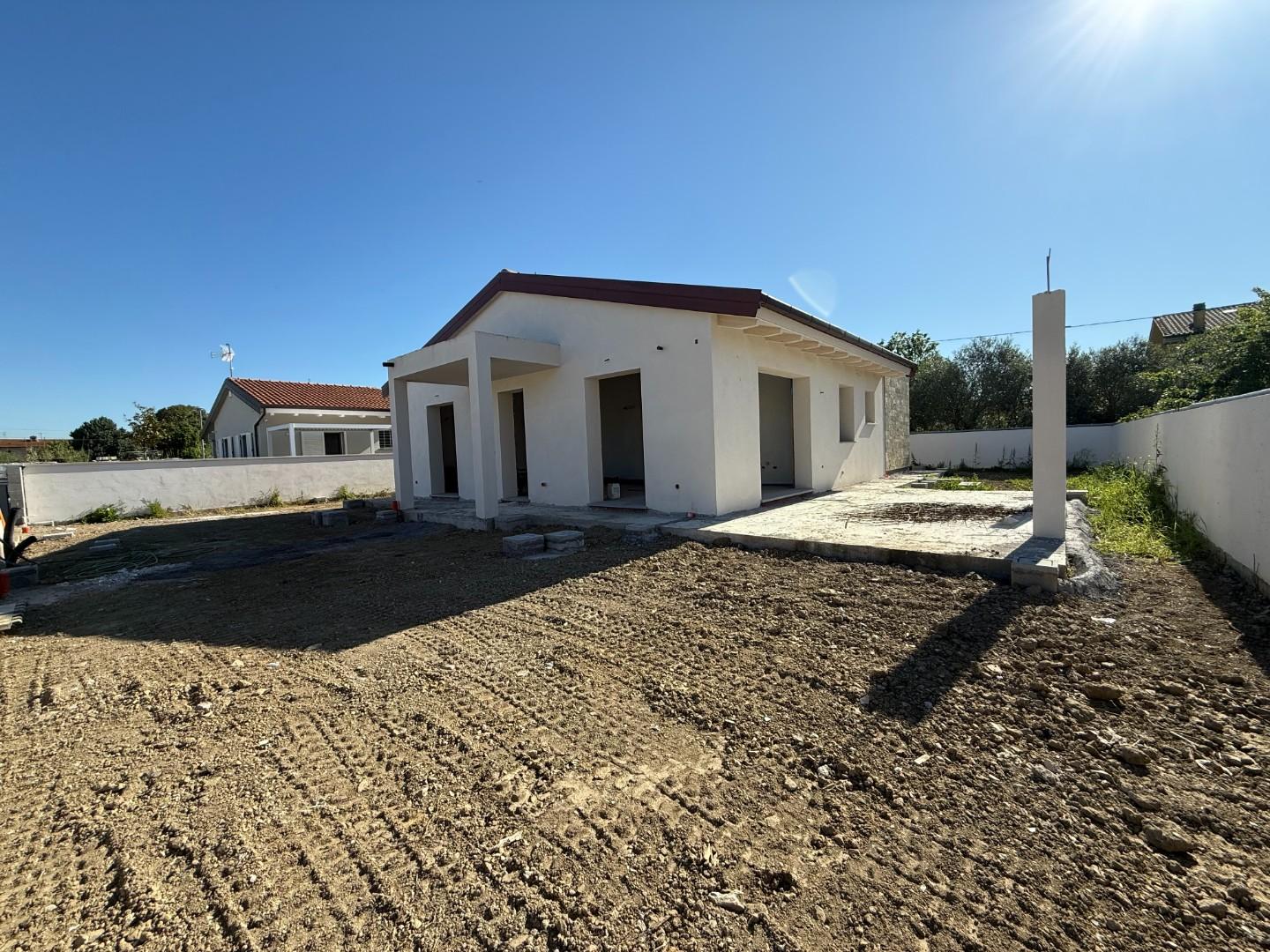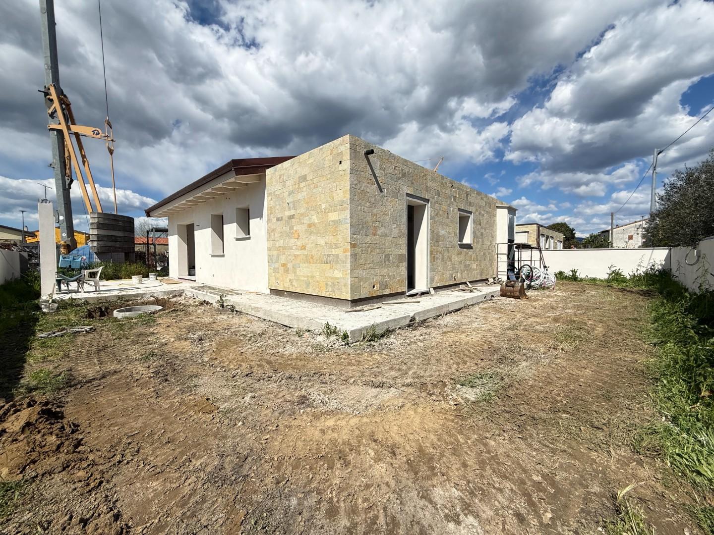 Invito a visionare le foto di riferimento delle costruzioni già realizzate visionabili esternamente in loco. CARATTERISTICHE: Casa realizzata con le nuove tecnologie: Pompa di calore, pavimento radiante, pannelli fotovoltaici potenziati, infissi in PVC, persiane in alluminio, tetti in legno lamellare a vista VENTILATI, pietra di rivestimento, cancelli e ringhiere (sui muri di cinta), zincati e verniciati come infissi, ampi spazzi parcheggio privati gettati in cemento e posati con autobloccante.