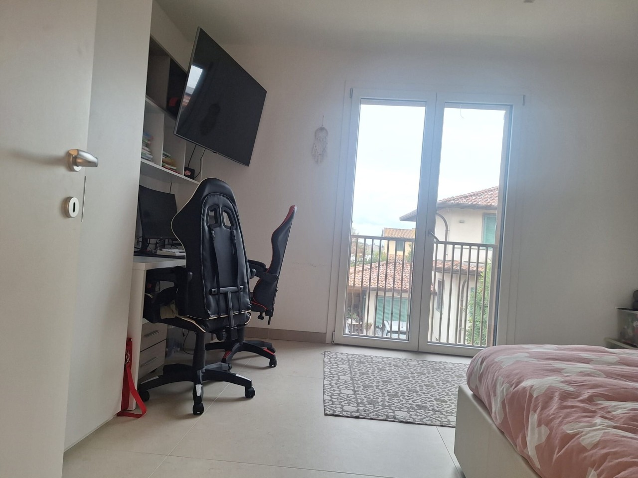 La zona notte, separata da un disimpegno, dispone di tre camere matrimoniali e un secondo bagno con doccia, garantendo ampi spazi e privacy.