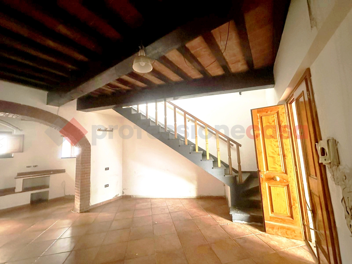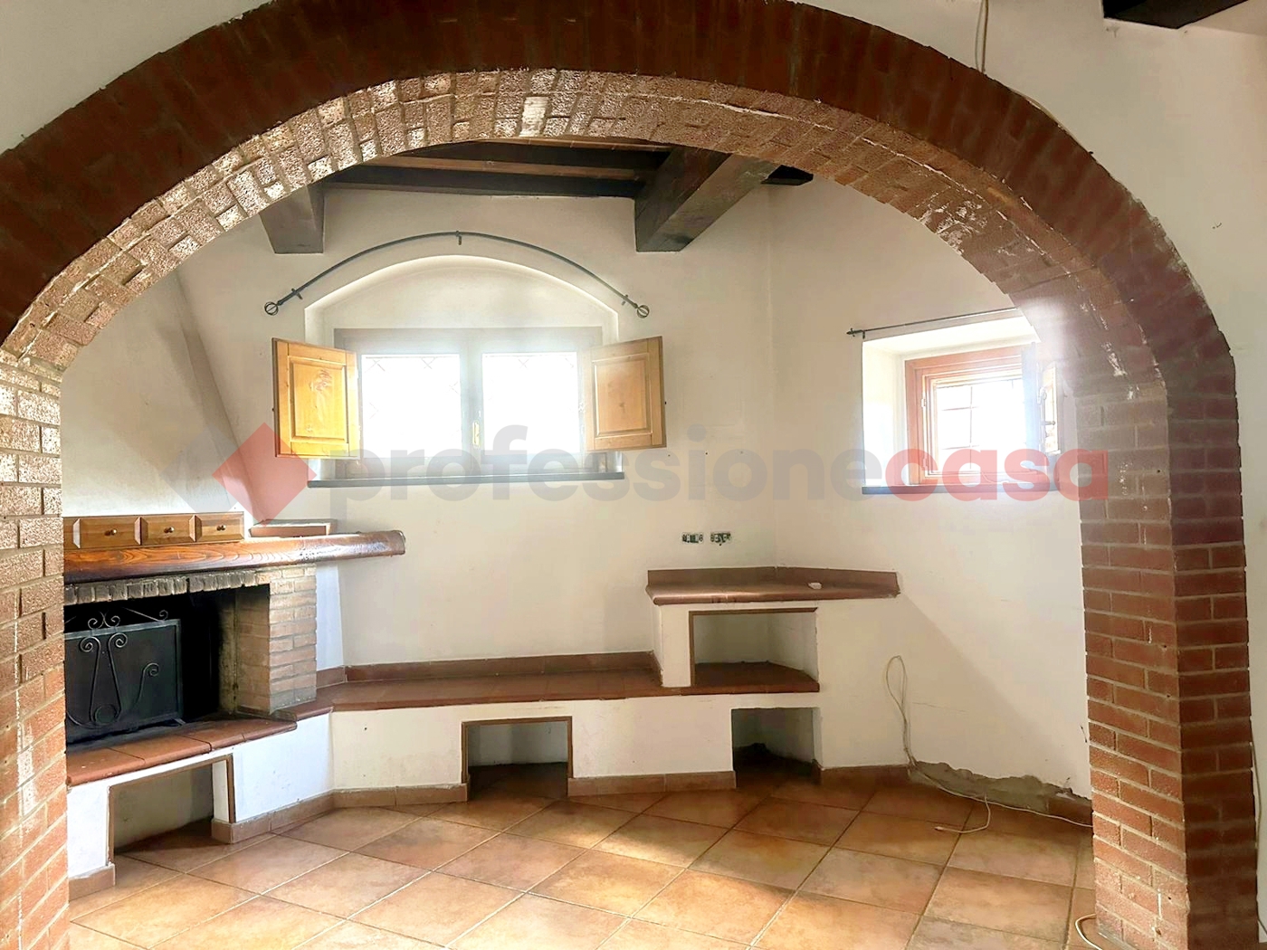 Le finiture sono di buona qualit, con serramenti in legno tamburato e doppi vetri che garantiscono un ottimo isolamento termico e acustico, travi a vista e con archi in mattoni, vasca idromassaggio.