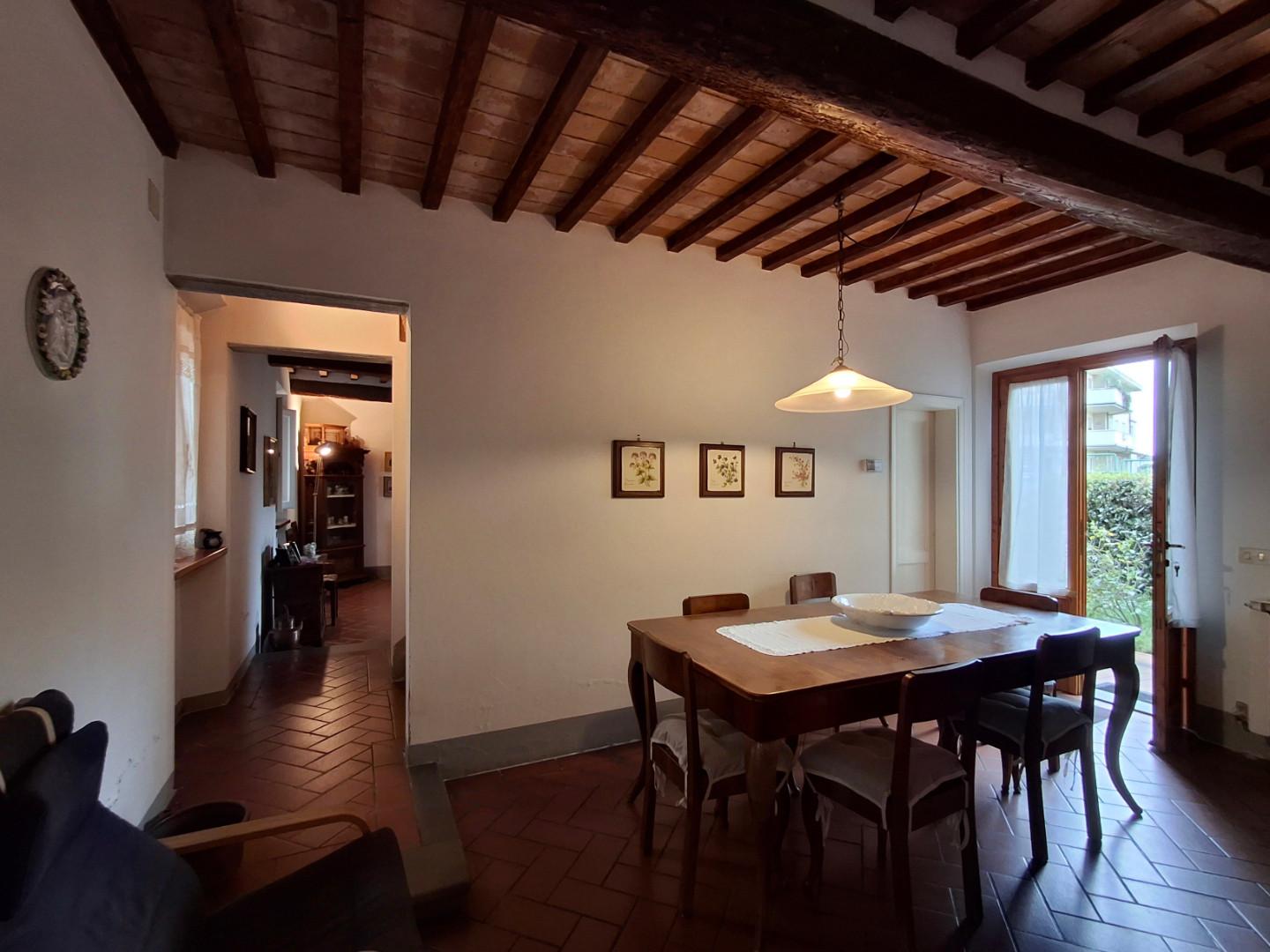 ***.*******.** T1978 - LIMITE SULL'ARNO. Situato in una posizione tranquilla, vicino a tutti i principali servizi, terrattetto disposto su due livelli, in ottimo stato di manutenzione, ristrutturato completamente e con gusto nel '94, in tipico stile toscano, con travi a vista cotto, si compone a piano terra da ingresso, soggiorno-parnzo con cucinotto, ampia sala, entrambi questi vani si affacciano sul giardino di proprietà, oltre a bagno con antibagno; al primo ed ultimo piano è composta da disimpegno, due ampie camere matrimoniali, una delle quali doppiamente finestrata che si presta molto bene ad essere divisa in due camere singole, altro piccolo vano, bagno con vasca.