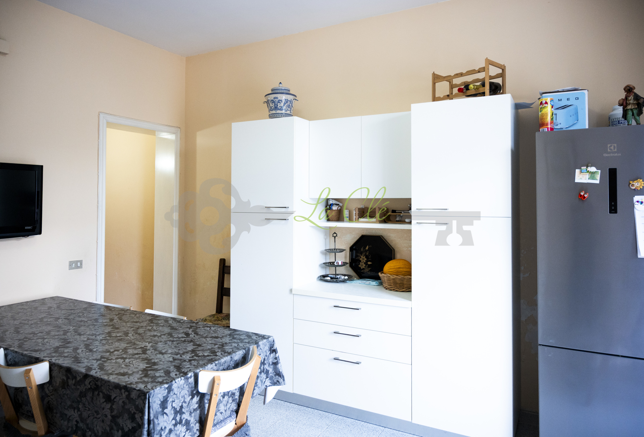 Abitazione piano terra di 8 vani, con ambienti luminosi e funzionali composto da: ingresso su disimpegno, soggiorno con angolo cottura.