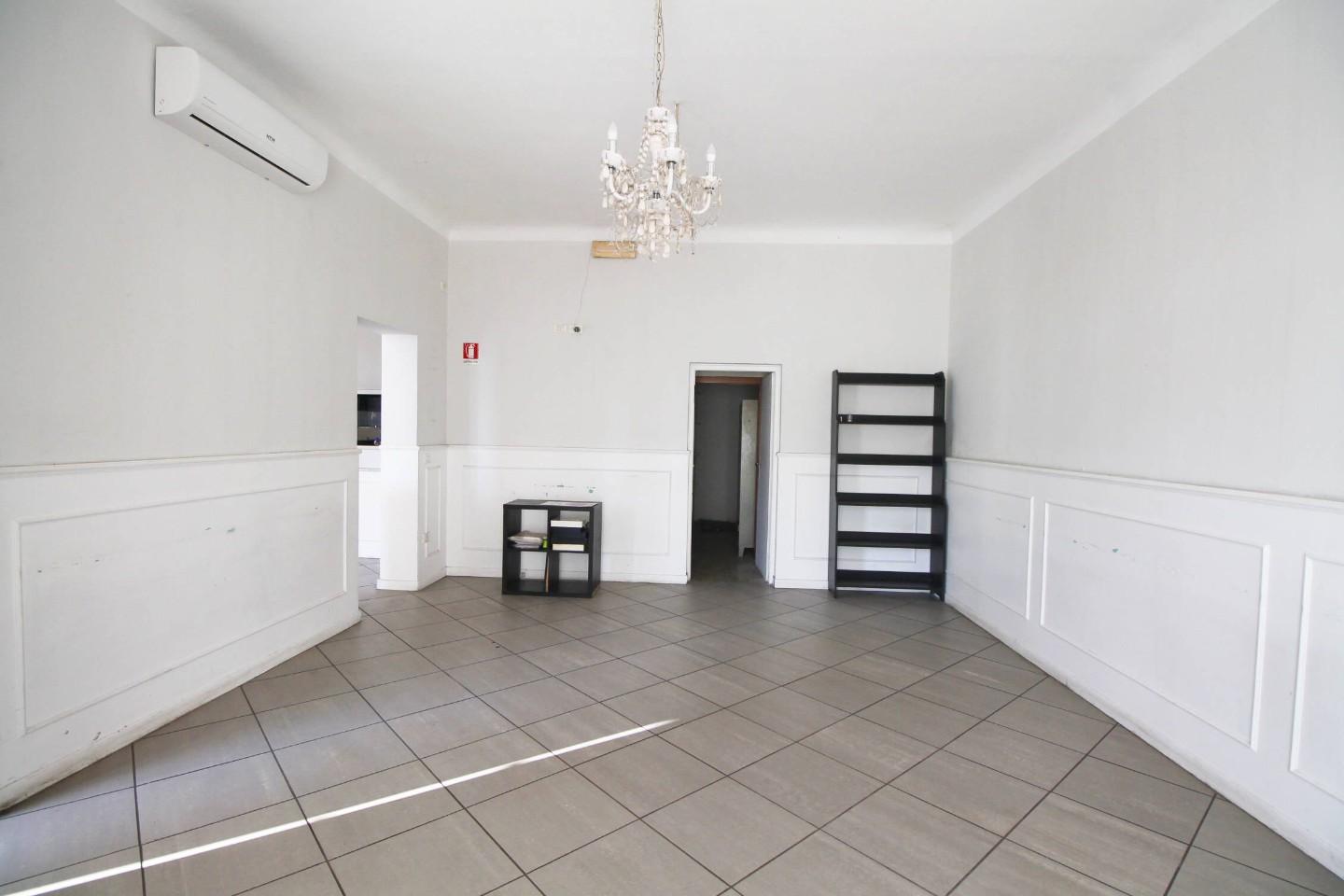Il fabbricato di circa mq 320 è composto da: - al piano terra da fondo commerciale di circa mq 120 con bagno e resede esclusivo (adatto per locale commerciale tipo bar, pizzeria, ecc.., come mostra o ufficio) - al piano primo da ampio appartamento con ingresso indipendente composto da: ingresso, ampio soggiorno, cucina, 2 bagni, 5 camere oltre bella terrazza abitabile di circa mq 80 . La proprietà è corredata inoltre da un garage e un bel giardino esclusivo con passo carrabile.