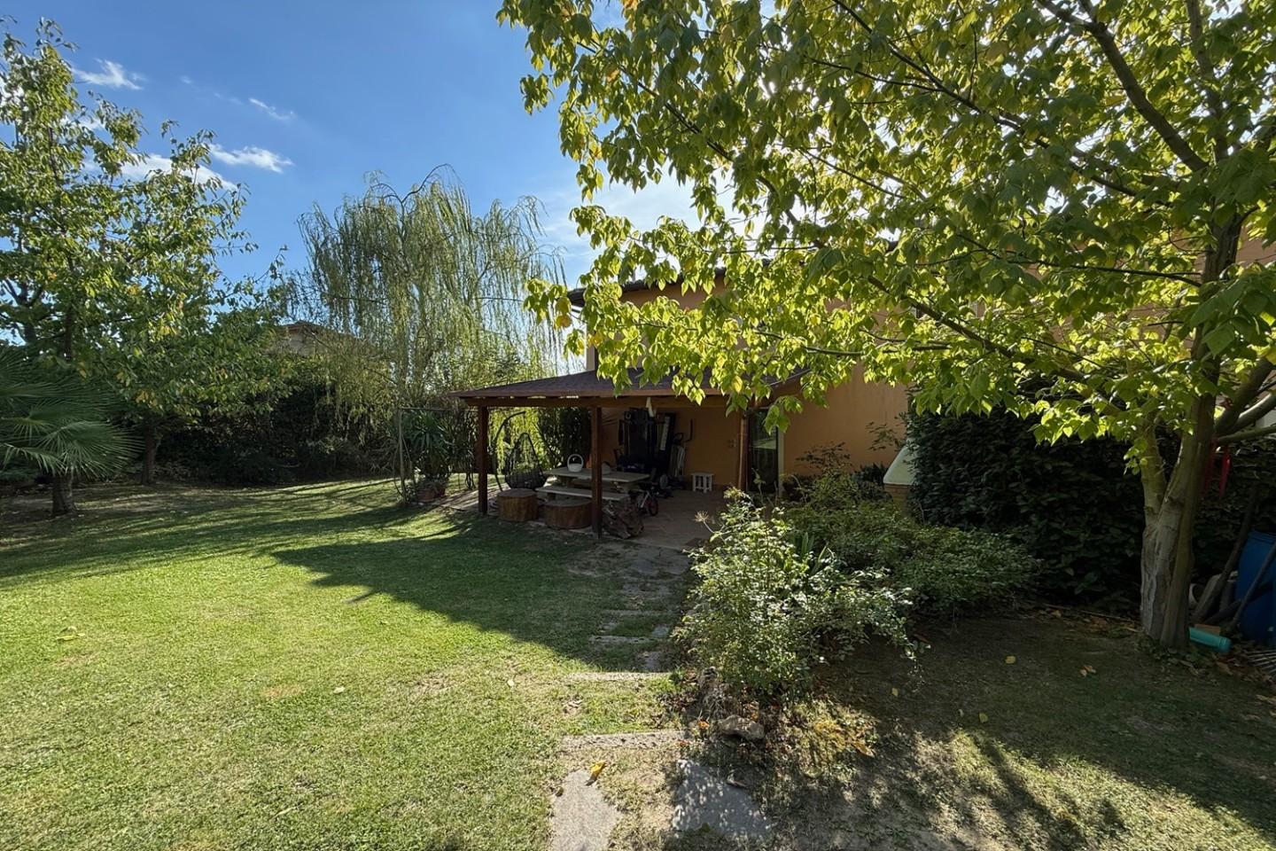 Allesterno un ampio pergolato, ideale per pranzi e cene allaperto, affaccia sul giardino privato, di ca. mq. 400 che regala riservatezza e piacevoli spazi di relax.