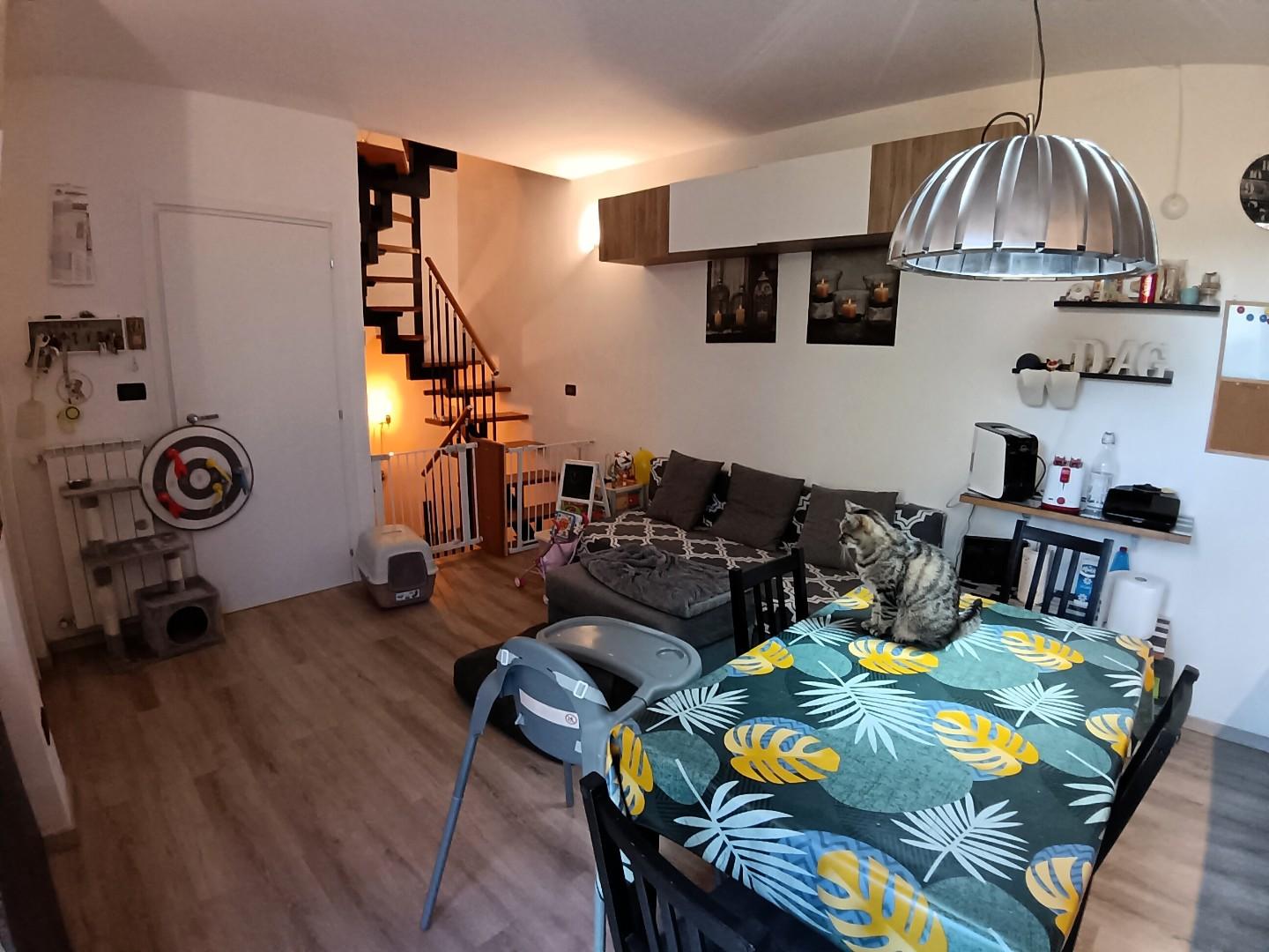 Salendo una scala a chiocciola (in legno) si arriva al piano primo dove troviamo una camera matrimoniale, una cameretta e un ulteriore bagno Al piano seminterrato ampio garage (24mq) con accesso da scala interna.