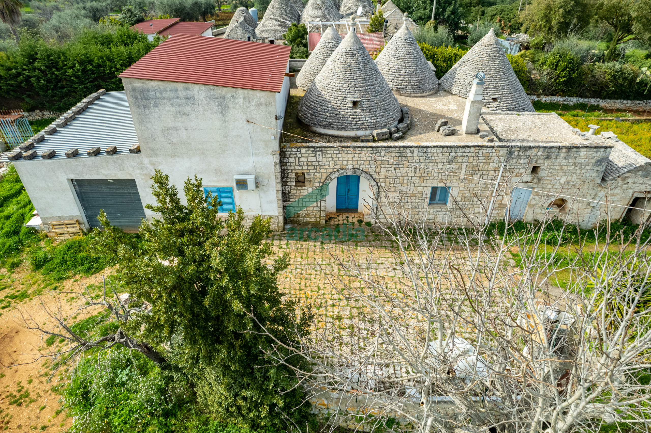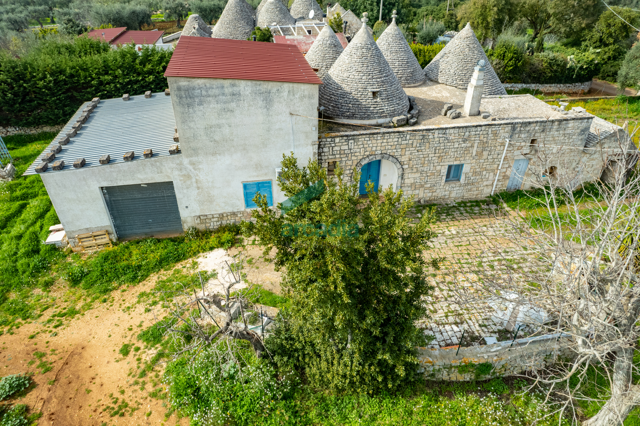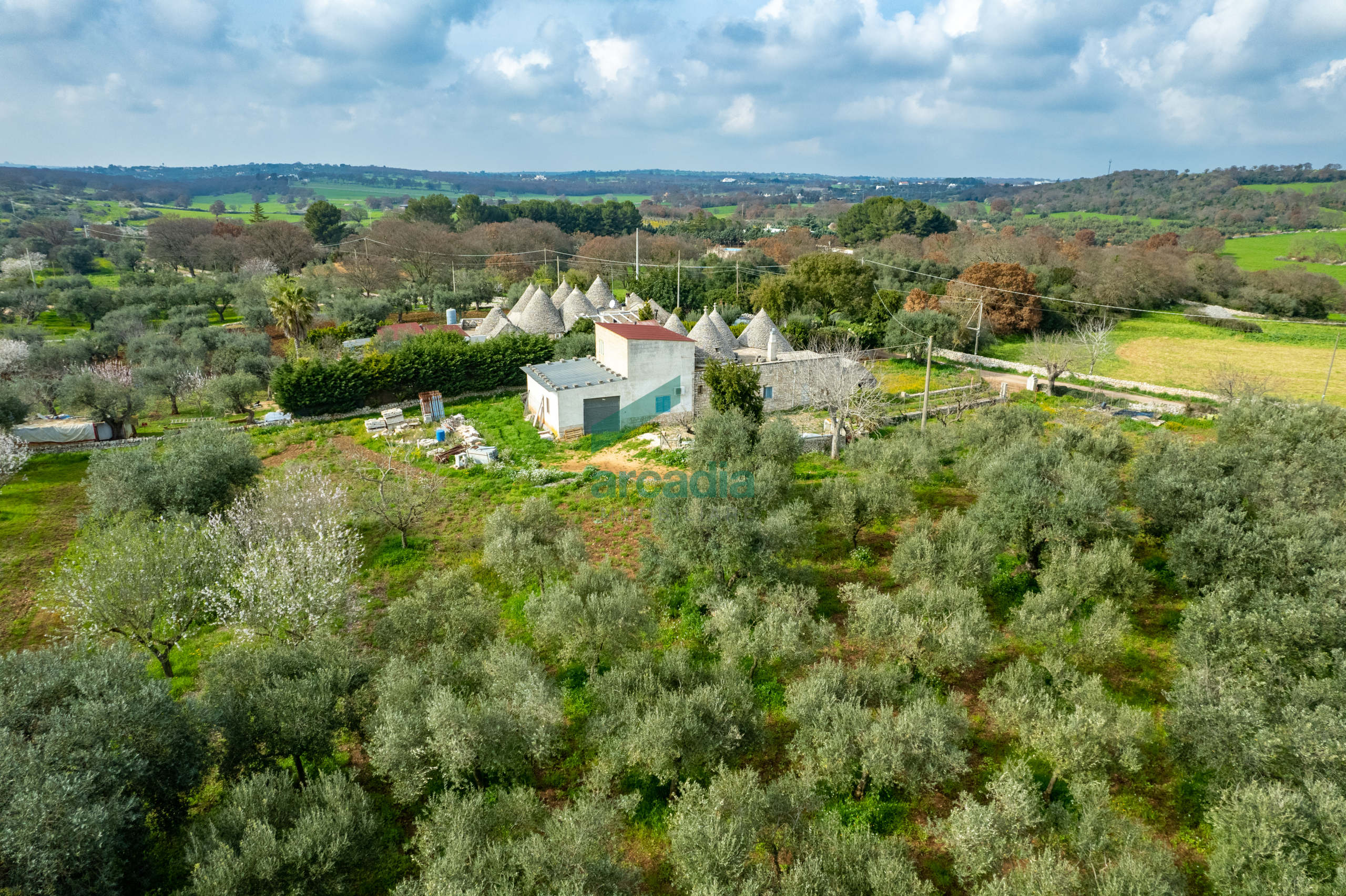 La proprietà si distingue per la presenza di quattro splendidi coni originali, perfettamente inseriti nel paesaggio rurale, affiancati da una struttura di epoca più recente, armoniosamente collegata ai trulli.