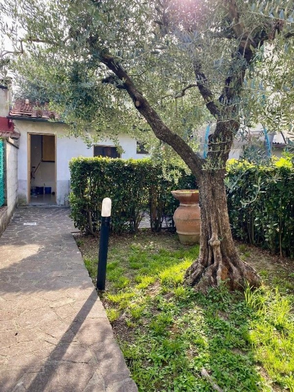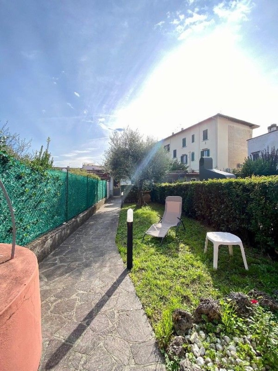 L ingresso si apre su un disimpegno dal quale si accede anche direttamente al garage carrabile, una comodità importante soprattutto in questa zona della città. Il piano terra ospita un soggiorno accogliente, una cucina abitabile con affaccio sul giardino privato di circa 100 mq, perfetto per momenti di relax e convivialità. All interno del giardino si trova una cantina ristrutturata e perfettamente sfruttabile come taverna, zona cene o spazio multiuso.