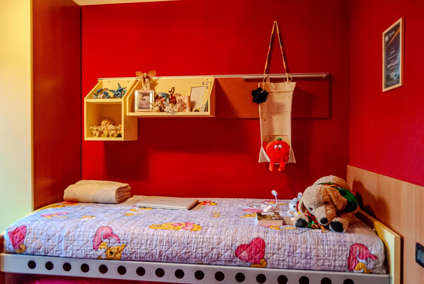 Salendo al primo piano, si possono trovare tre camere da letto: una matrimoniale, una singola e una doppia con accesso a un terrazzo.