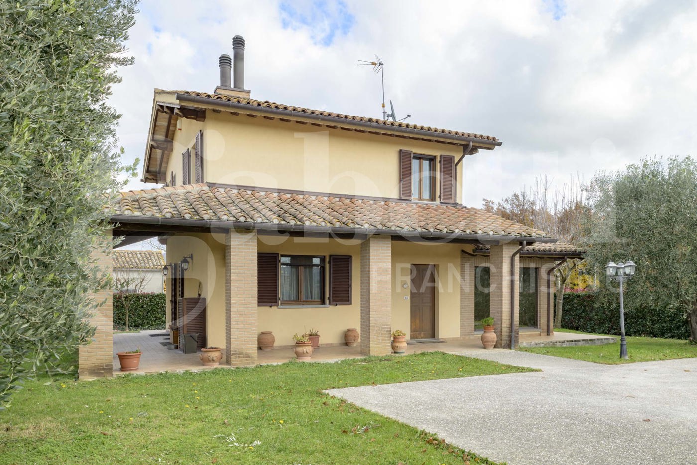 In zona tranquilla e riservata, indipendente di recente costruzione, antisismica, con al piano terra ampia e luminosa zona giorno con cucina a vista e camino, bagno e veranda.
