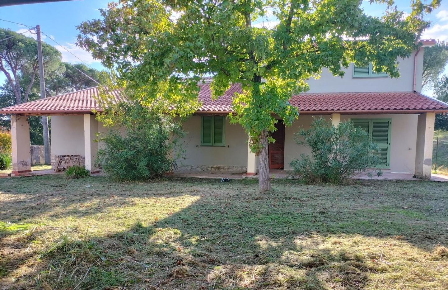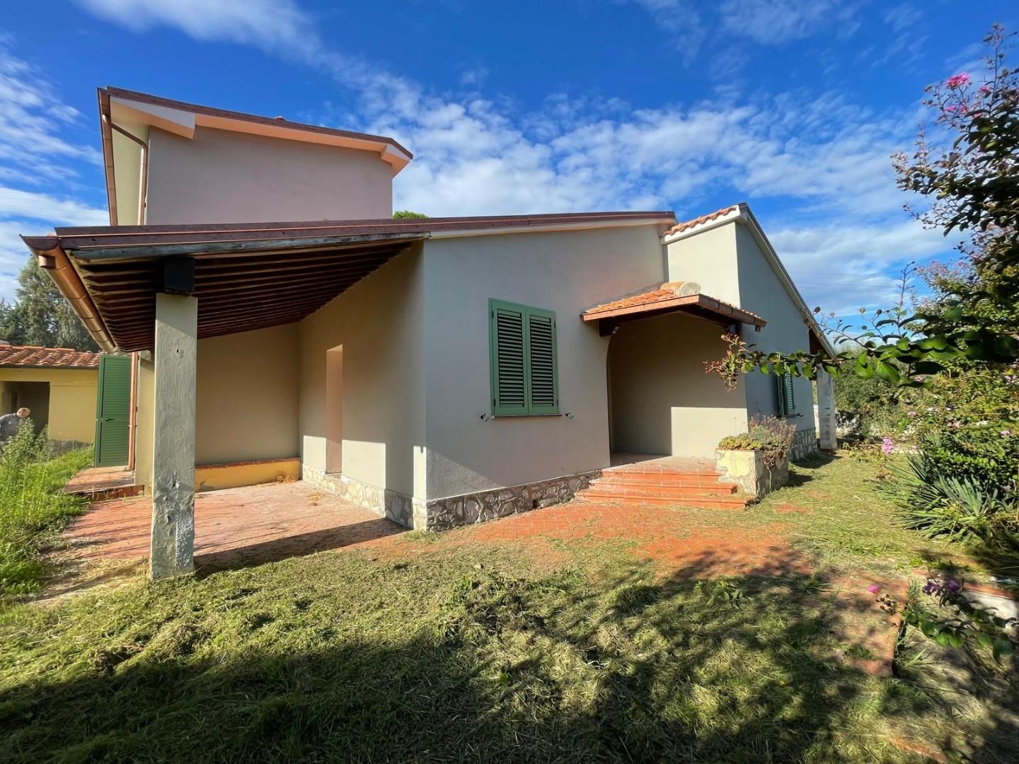 Maggiori informazioni in ns. uff. ENGLISH: A spacious detached villa with private garden, arranged on two floors connected by an internal staircase, presently composed as follows: the ground floor, which is accessible from several sides and boasts a large main porch and two other porches, provides a large entrance hall, a big triple living/dining area with fireplace, a livable kitchen, a multipurpose room, two bedrooms and two bathrooms.