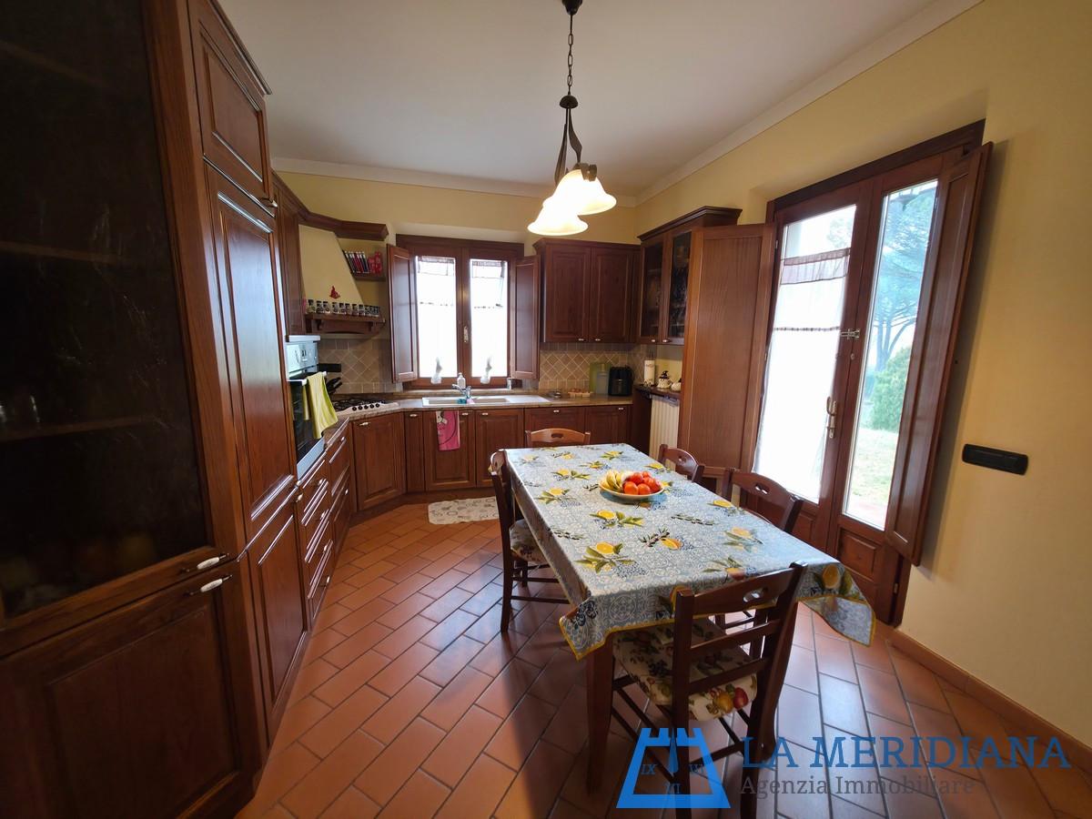 Composta da: Al piano terra ampio soggiorno con caminetto e stufa a pellet, cucina abitabile con accesso al giardino, disimpegno e bagno con doccia finestrato Al piano primo disimpegno con ripostiglio, due camere matrimoniali, di cui una con doppia esposizione, una camera singola e bagno con vasca finestrato Al piano seminterrato ripostiglio con lavanderia Completa la vendita giardino privato circostante l'abitazione di mq 200 circa, oltre a n.3 posti macchina scoperti L'immobile è in ottimo stato abitativo e presenta rifiniture in stile rustico toscano, con scala in pietra serena, pavimentazioni in cotto ed archi con mattoni faccia-vista.