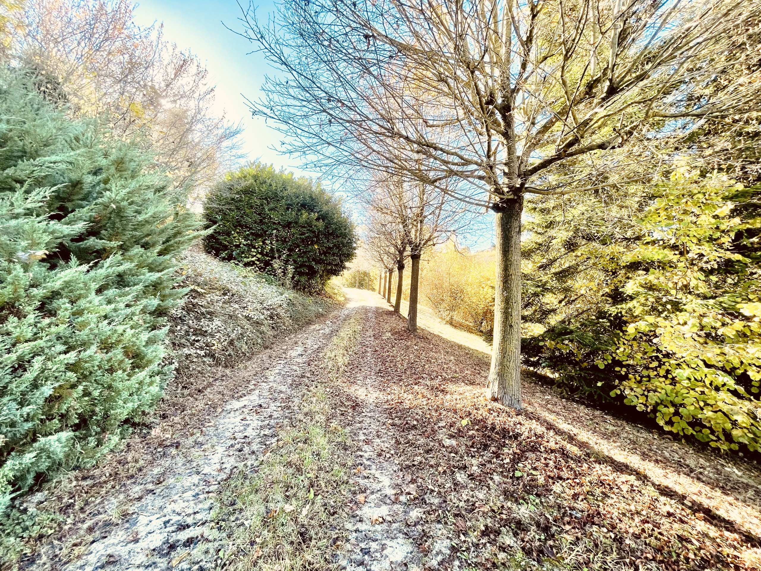 Il terreno circostante è splendidamente variegato: una parte è vigneto, una parte prato e una parte parco alberato, creando un insieme armonioso che esalta la bellezza naturale del luogo.