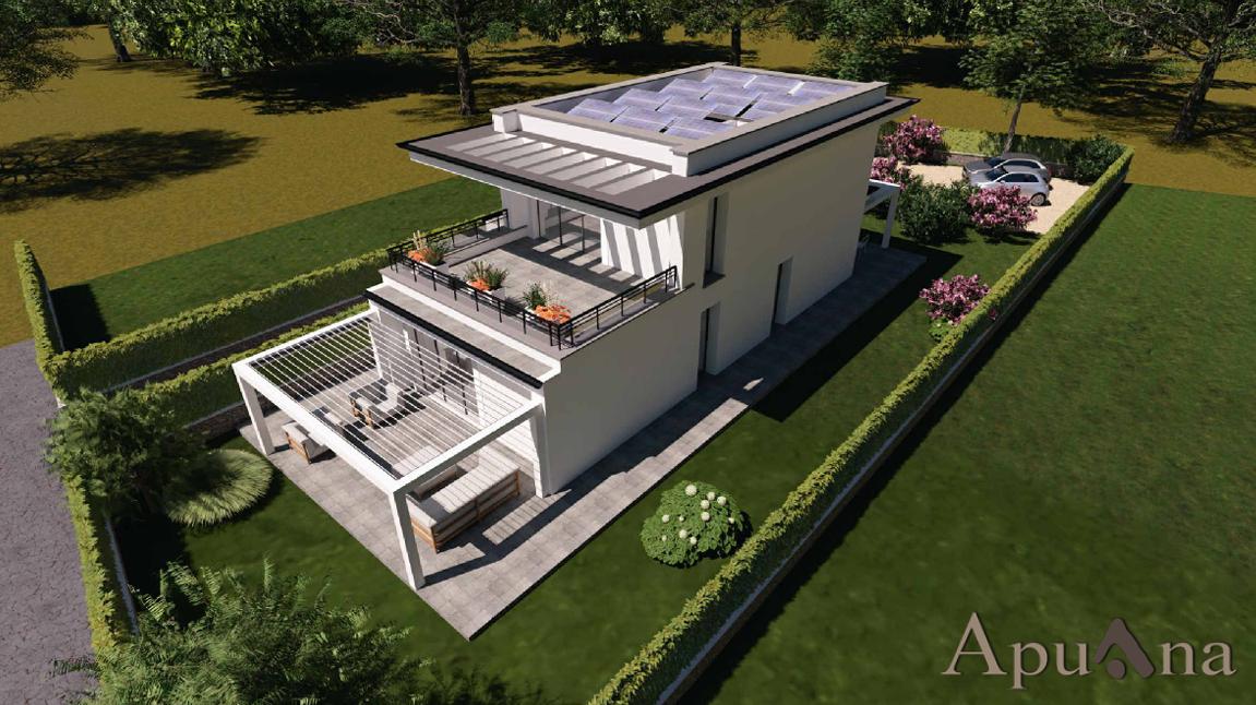 E' già stato approvato un progetto che si sviluppa su due piani: al piano terra si compone di ingresso, soggiorno con accesso a pergola esterna che gode di una bellissima esposizione sud ovest, ampia cucina pranzo con accesso esterno a pergola per piacevoli pranzi all'aperto e un comodo bagno; al piano primo abbiamo la zona notte con grande camera matrimoniale (20 mq) con accesso a terrazza, seconda camera di 13 mq con accesso a terrazza di 23 mq, disimpegno e bagno.