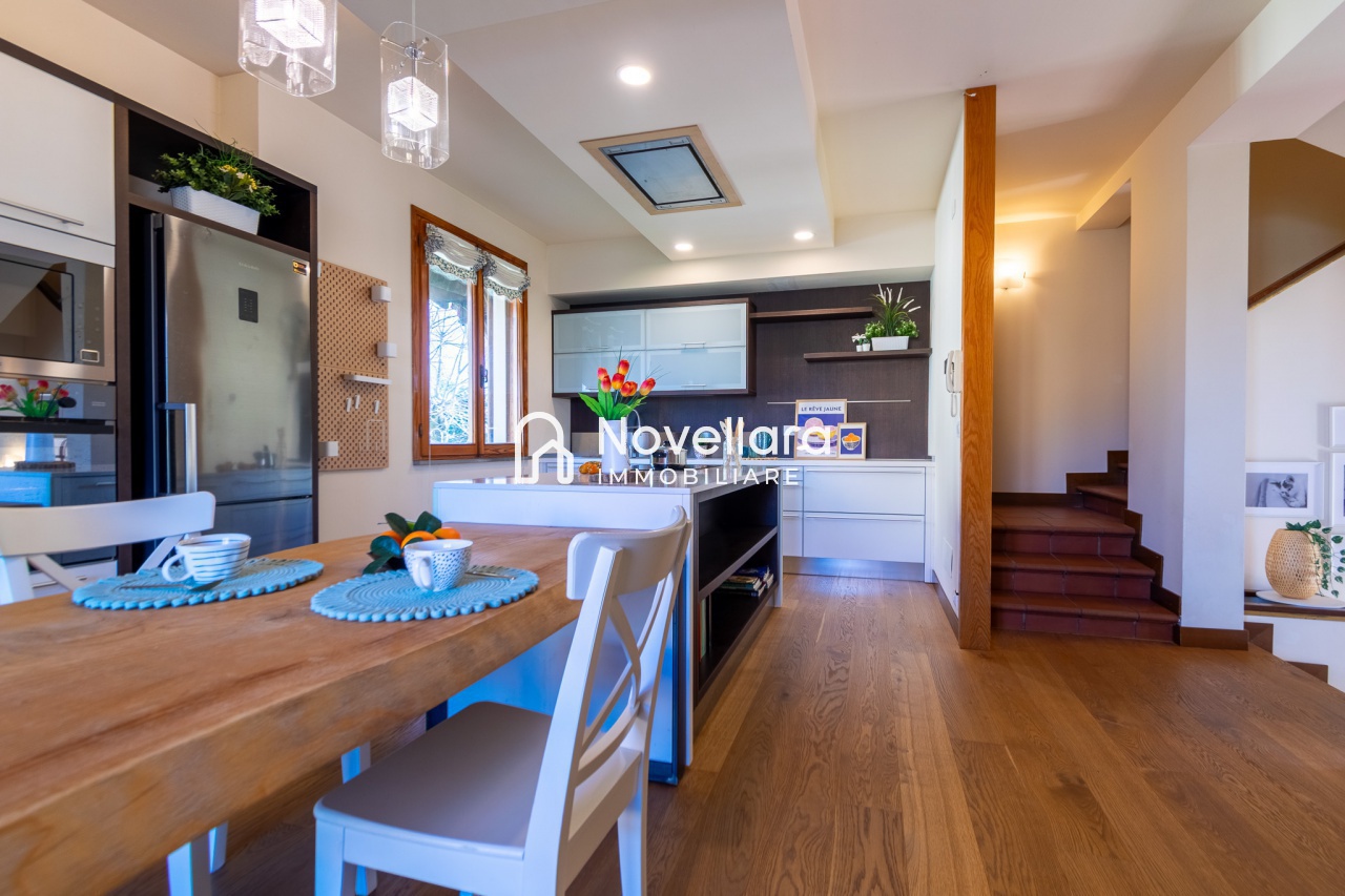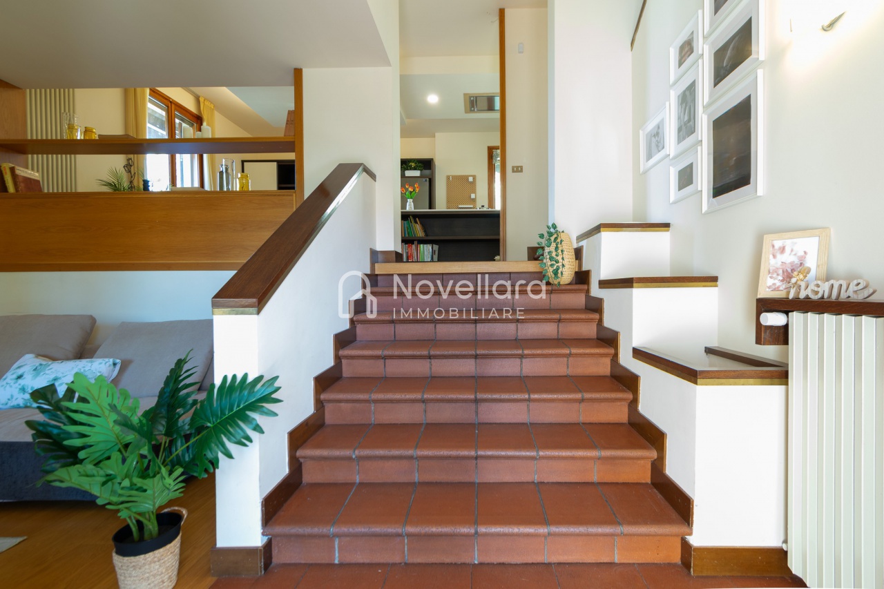 La proprietà ti accoglie su ingresso e luminoso soggiorno con camino, salendo qualche scalino si arriva alla grande cucina moderna con zona pranzo, con affaccio sul balcone, ideale per chi ama cucinare o condividere momenti di convivialità con amici e parenti.