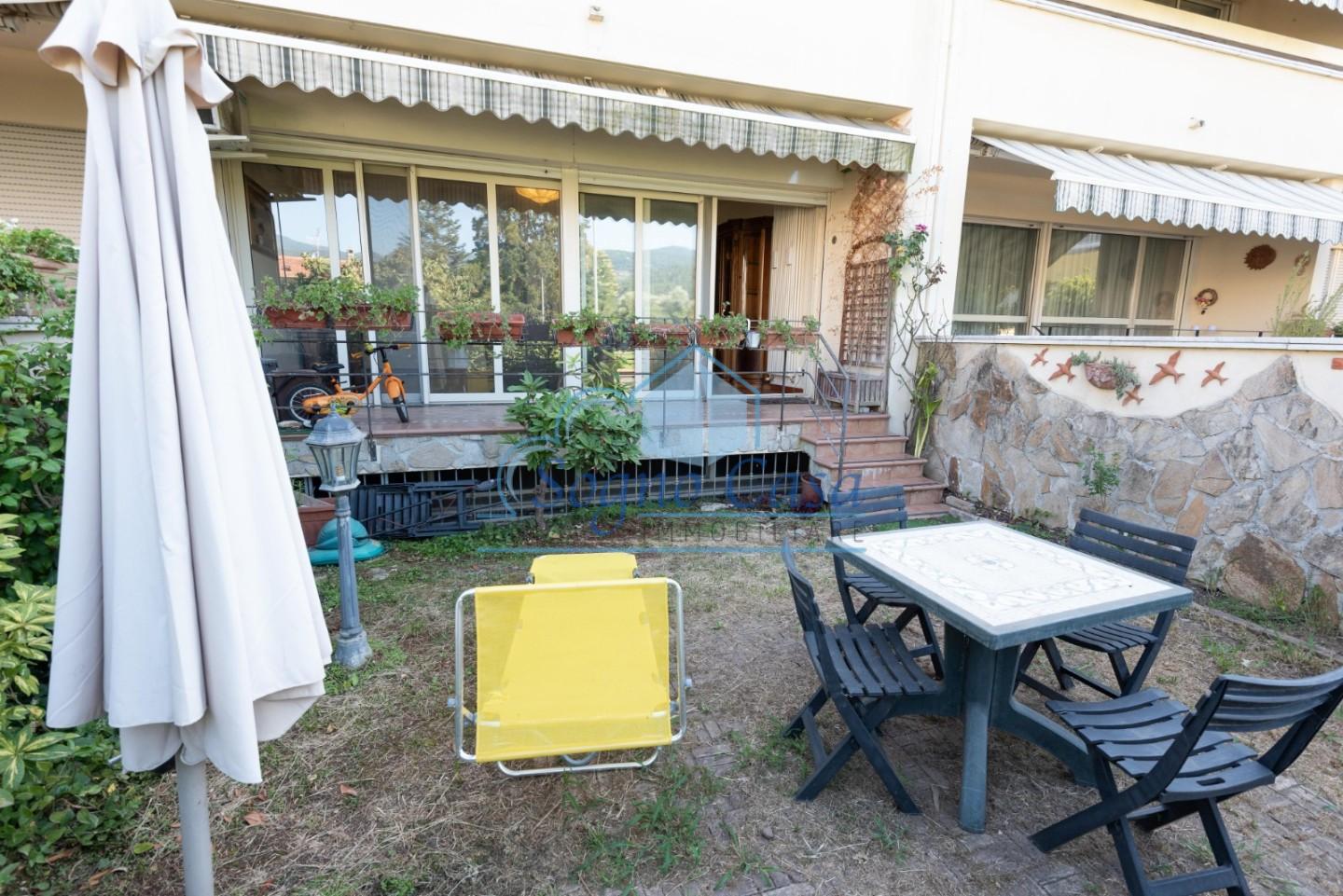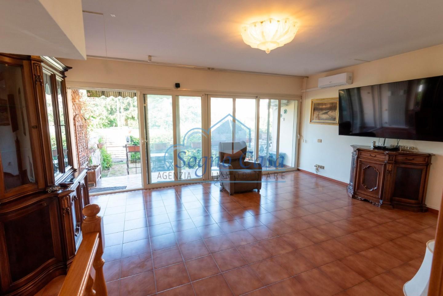 Varcando lingresso, ci si trova in un ampio soggiorno luminoso con accesso diretto alla terrazza e al giardino, perfetti per momenti di relax o convivialità allaria aperta.