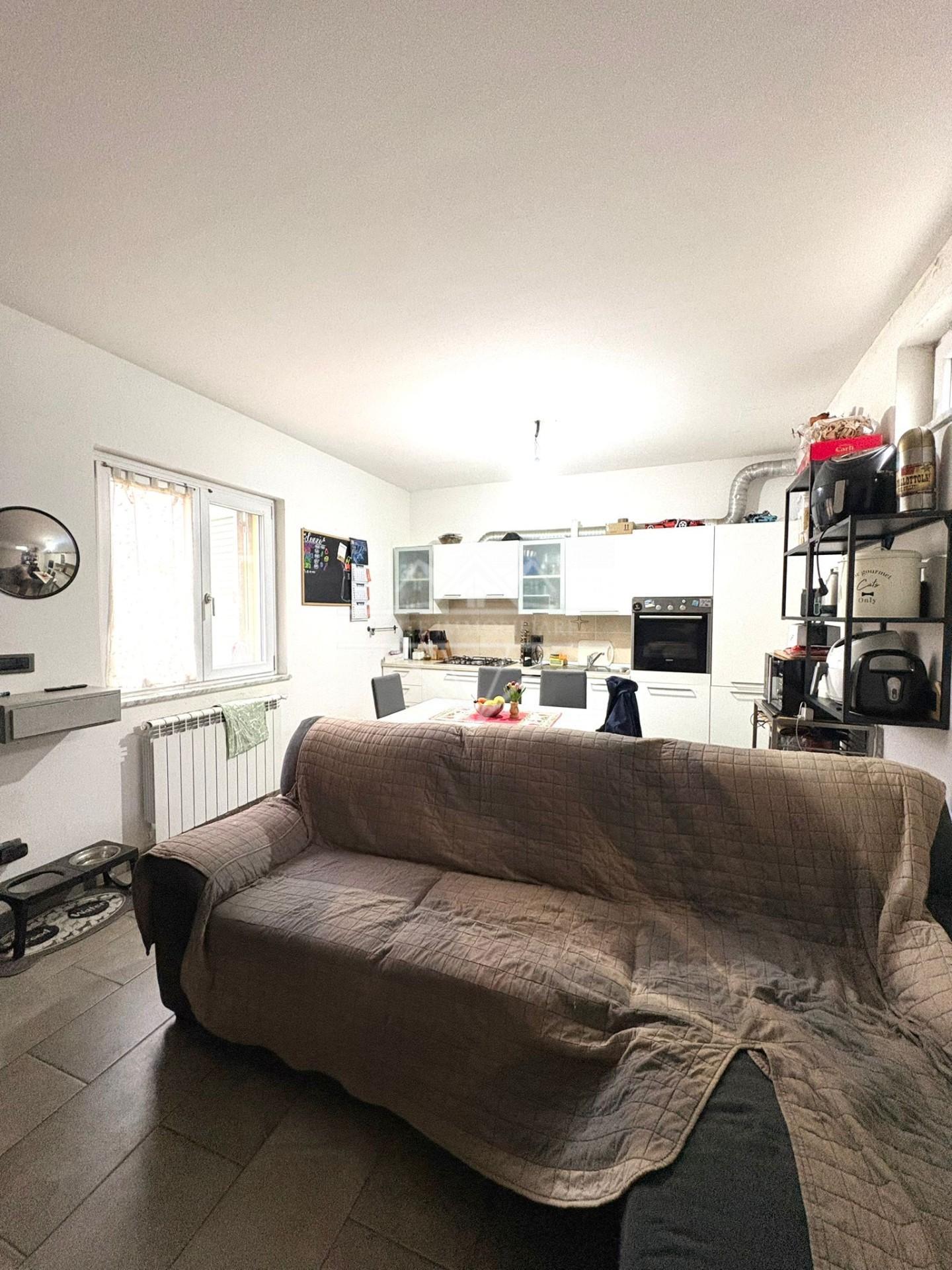 ? Lingresso si apre su una zona giorno funzionale con soggiorno e cucina a vista, un ambiente accogliente e ben organizzato.