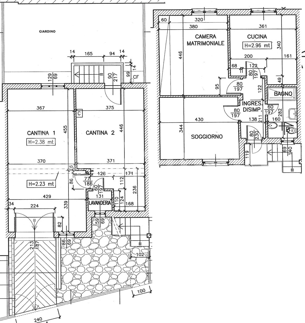 La casa dispone attualmente di 2 locali e 1 bagno, ma con la possibilit di ristrutturare e riorganizzare gli spazi, possibile ricavare una zona giorno al piano seminterrato e 3 camere da letto con bagno al piano rialzato.