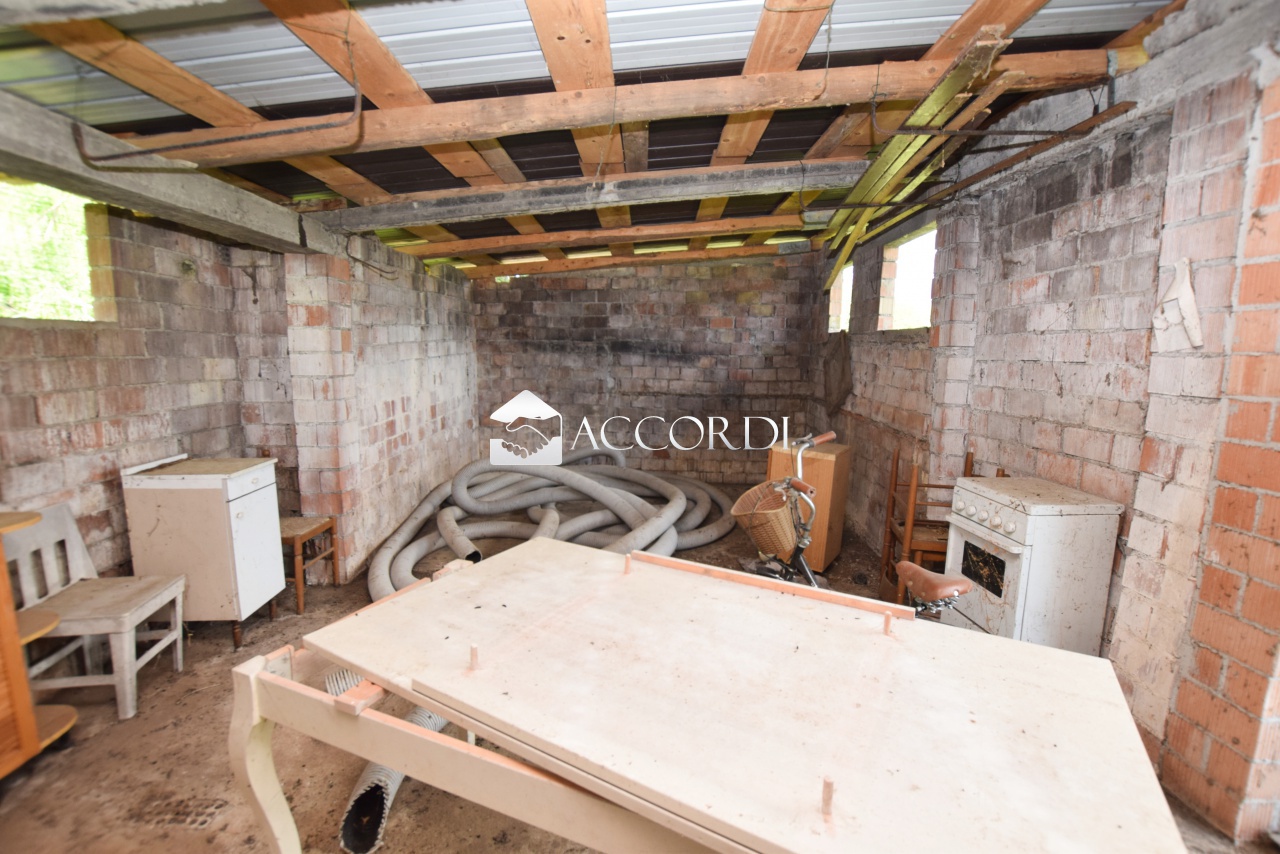 L'esterno offre 1000 mq di giardino privato suddiviso tra parte alta e parte bassa; in quest'ultima troviamo un ricovero attrezzi di 43 mq già servito da allacciamento idrico, ideale da adibire a dependance, officina o garage.