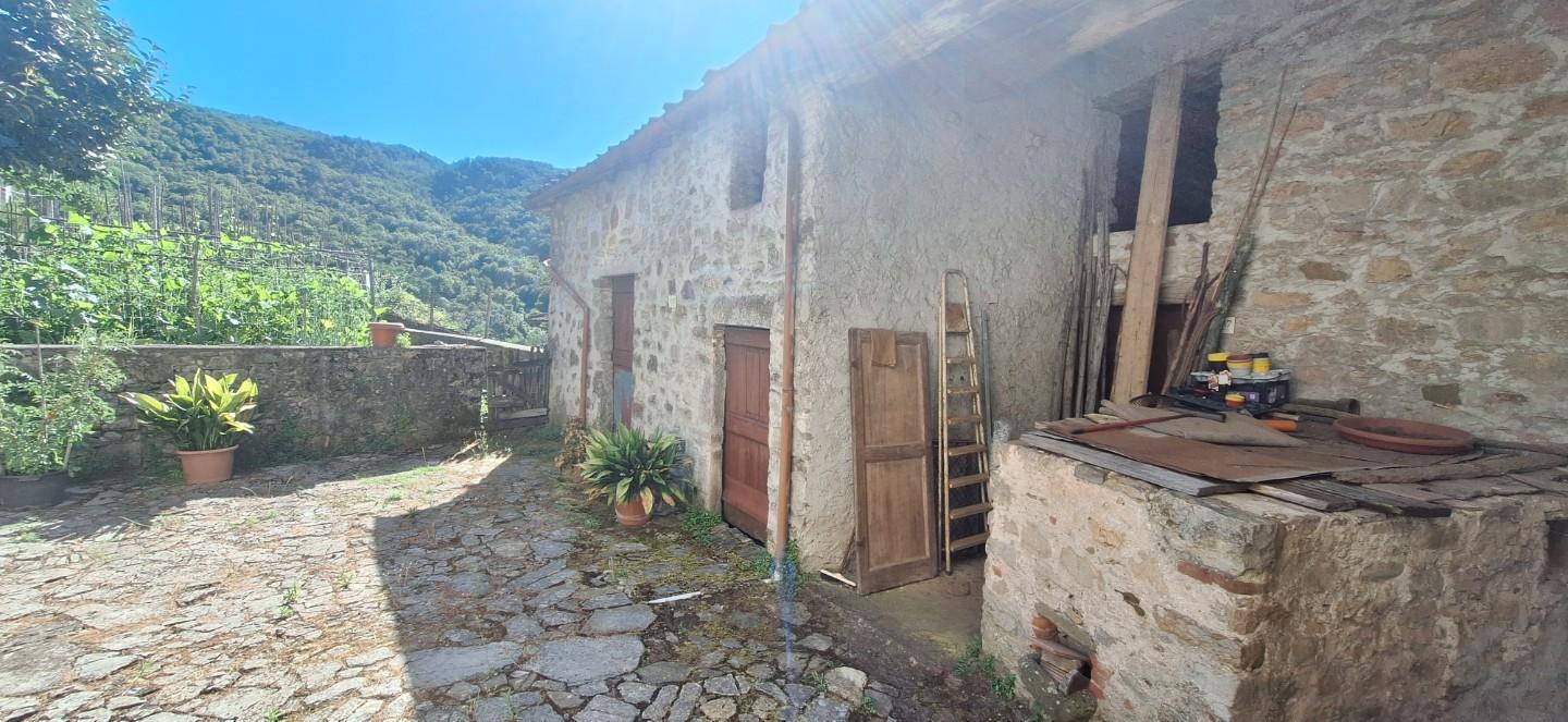 La proprietà è raggiungibile per esperti guidatori con una piccola auto. Si compone al piano terra da soggiorno-ingresso, cucina-tinello con forno a legna e accesso alla bella terrazza panoramica, 3 camere (di cui una singola e 2 matrimoniali), bagno e ripostigli vari. Al piano seminterrato ampie cantine su terra, con archi in pietra e mattoni, antichi travi e cotto.