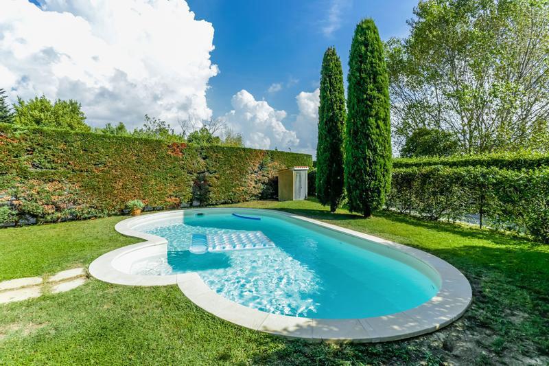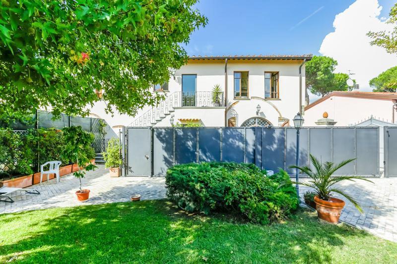 All'esterno, in proprietà esclusiva, l'ampio giardino con irrigazione automatica divisa in settori e alimentata da un pozzo artesiano e un pozzo ad anelli entrambi con sonde di livello, zona adibita a parcheggio auto per un totatle di sei posti coperti con impianto fotovoltaico di 6 kw e punto luce per ricarica veicoli elettrici, gazebo con barbeque e forno per cene all'aperto e bella piscina.