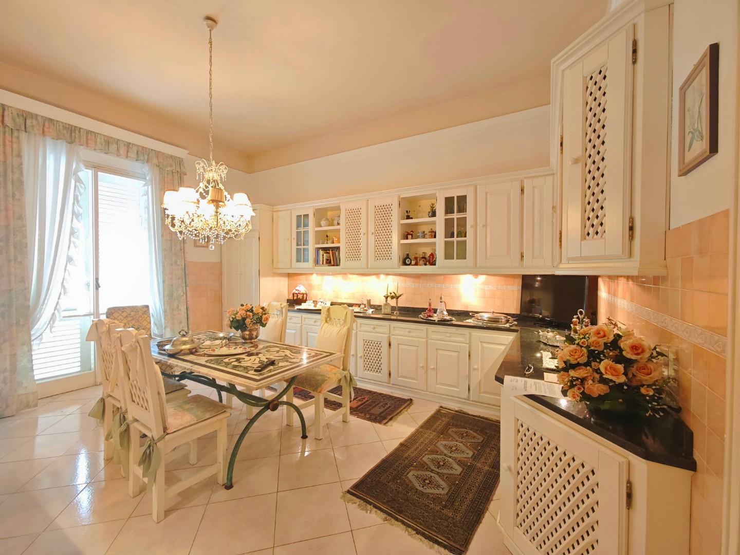 Successivamente, si trova una spaziosa cucina abitabile, alla quale si aggiungono due immense aree dedicate alla zona giorno dotate di numerose porte-finestre, tutte zone che si uniscono creando un ambiente unico, grande e luminoso.