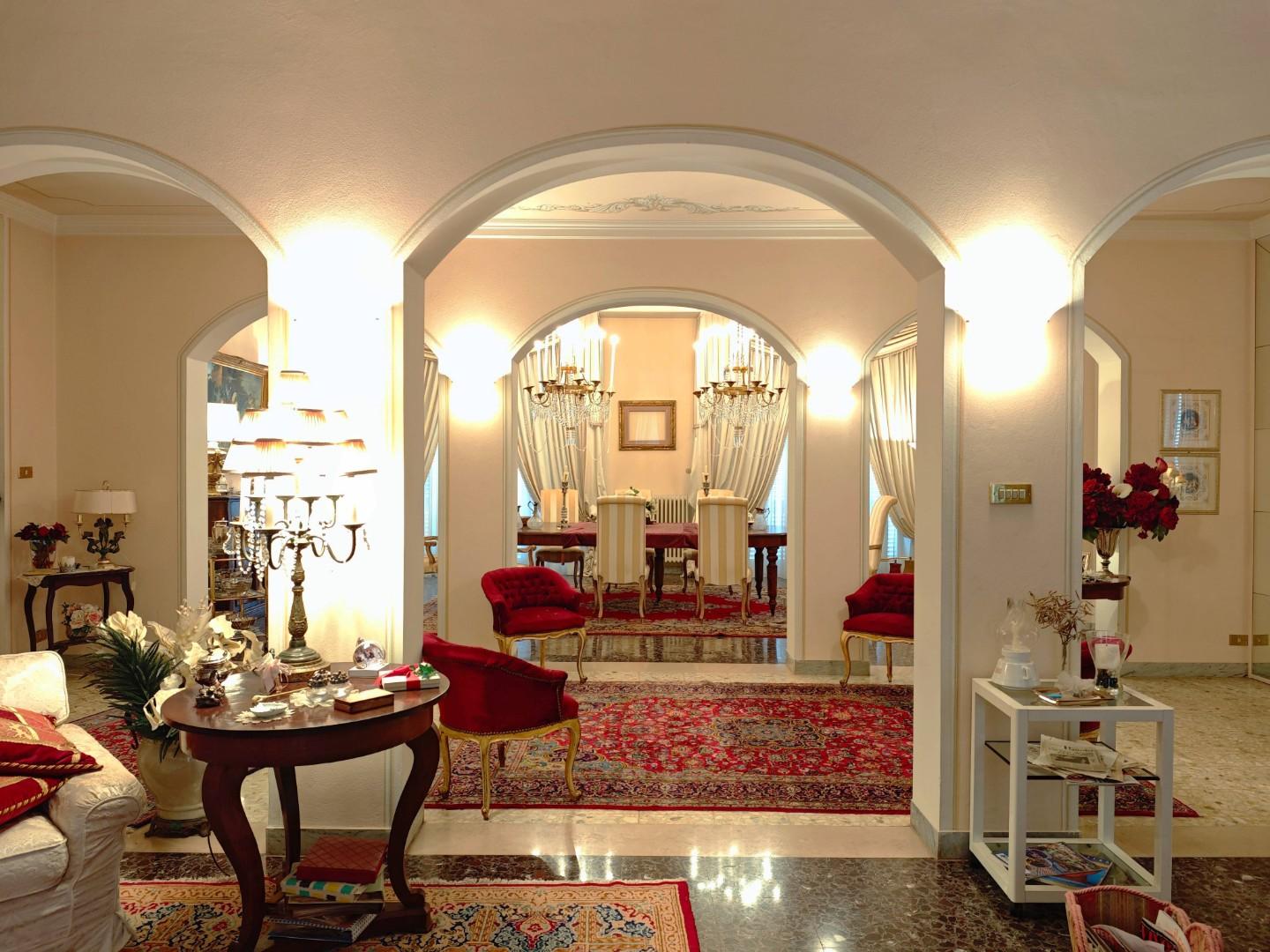 This property, with an independent garden, two parking spaces and two livable terraces, covers an area of 418 square meters and consists of 13 rooms, offering numerous customization possibilities, including the potential to be transformed into a duplex.