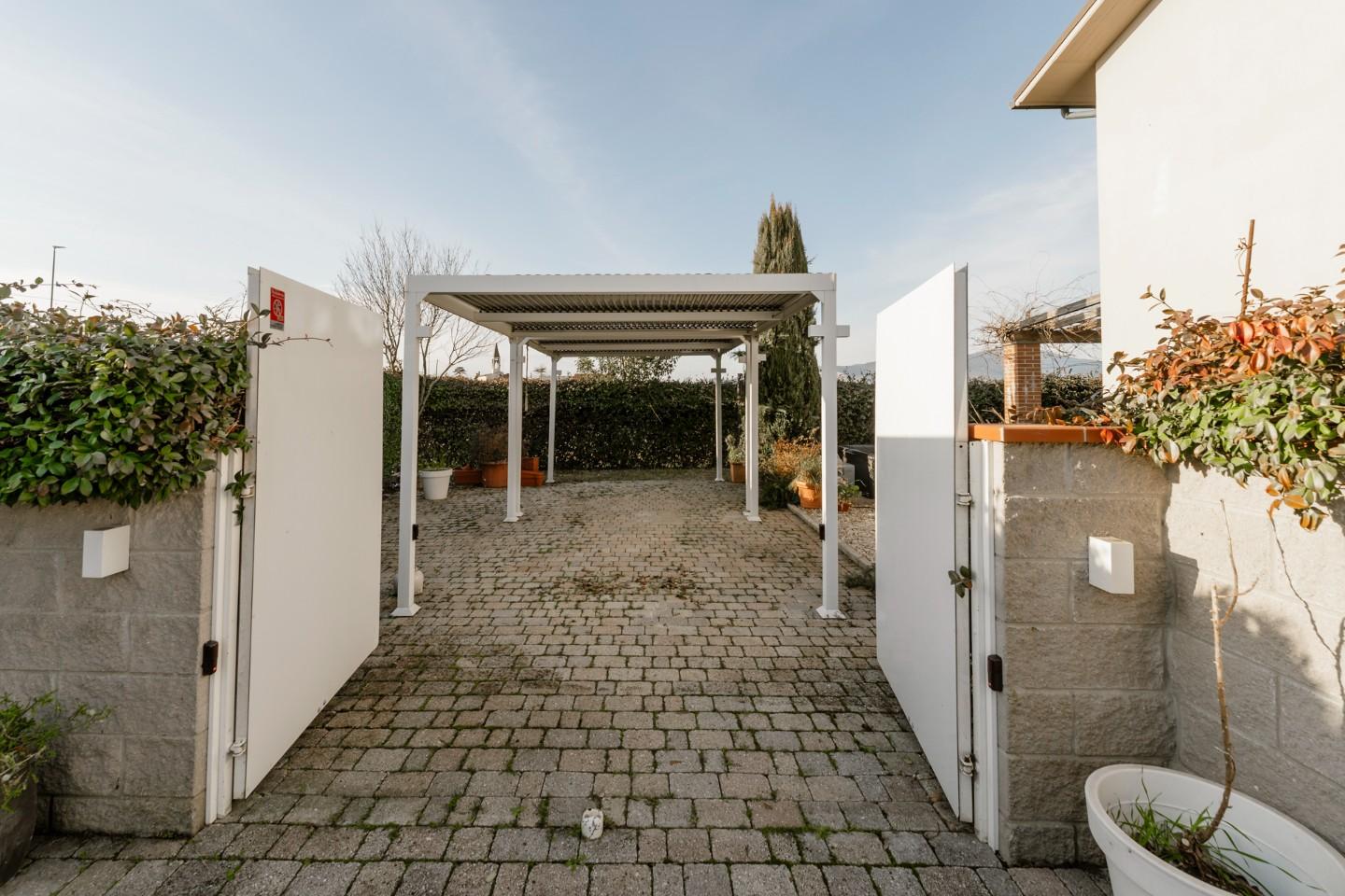 Composizione dellimmobile: Piano Terra: Ampio living con zona soggiorno Zona pranzo Cucina Bagno Piano Primo: 2 Camere da letto Studio Bagno principale 2 Balconi Caratteristiche Principali: Ingresso indipendente per la massima privacy Esposizione a est-sud-ovest per una luminosità impareggiabile Giardino di 300 mq libero su tre lati, ideale per pranzi all'aperto, barbecue, e momenti di relax Posto auto interno ed esterno, minipiscina e pergotenda Questa villetta rappresenta un'ottima opportunità di investimento grazie alla sua posizione strategica e alle sue caratteristiche uniche.