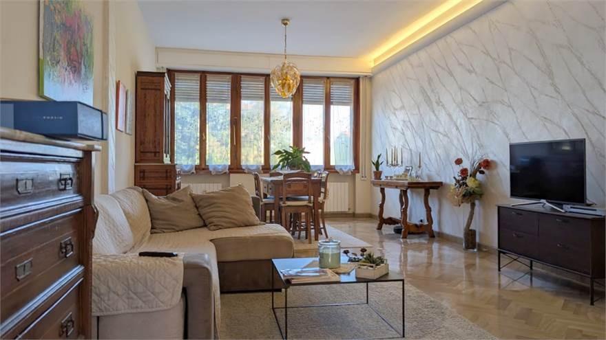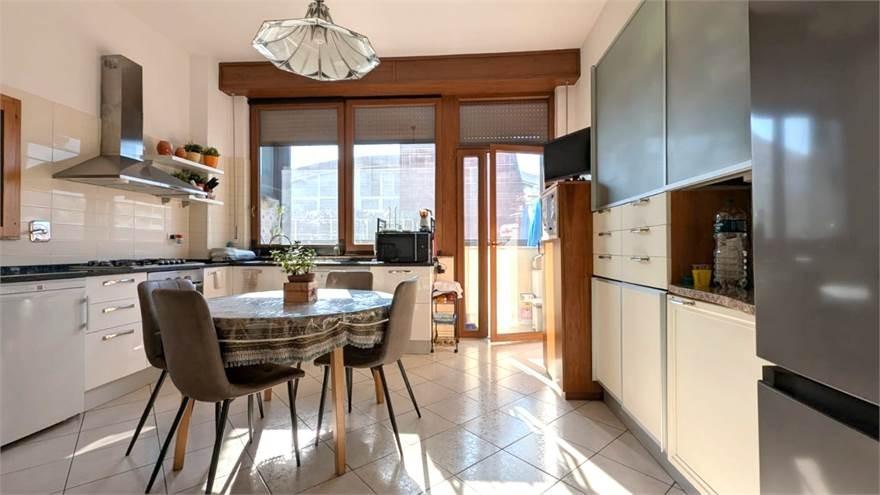 Al primo piano ingresso, luminoso salone, cucina abitabile con balcone e ripostiglio, quattro camere da letto, bagno, ripostiglio lavanderia.