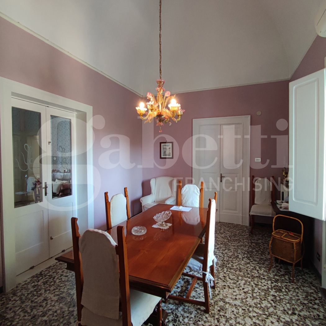 La parte abitativa si sviluppa al piano rialzato e si compone di 10 vani con copertura a volta del tipo 'Padiglione'. Da Corso Roma si accede ad un ampio vano d'ingresso centrale, utilizzato sia come soggiorno che come accesso agli altri locali, quali il tinello, cucina abitabile con camino, studio, tre camere da letto, salottino con volta pregevolmente affrescata ed angolo pianoforte, e due bagni.