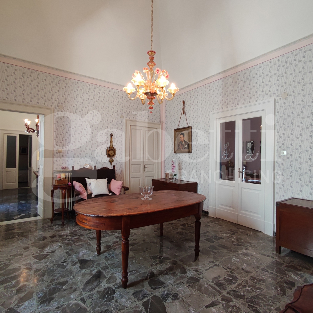 Tali vani possono essere messi in comunicazione con l'abitazione principale, oppure utilizzati come piccola unit abitativa o studio professionale a s stante, avendo ingresso indipendente da Corso Roma e Via Zara. Dalla sala da pranzo della dimora si accede direttamente su un loggiato che guarda lo splendido giardino retrostante, che ha una superficie di 625 metri quadri, diviso in quattro grandi aiuole con dei vialetti contornati da colonne, che a loro volta sostengono un pergolato.