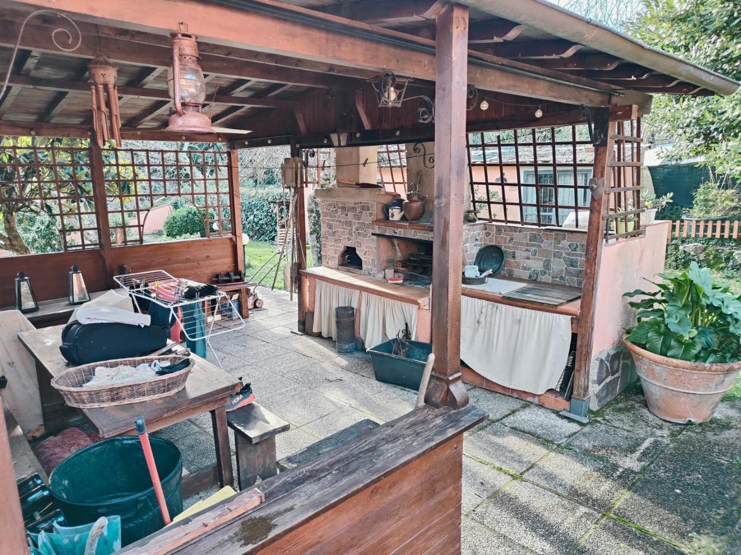 Disposto tutto su unico livello, oggetto molto affascinante con 2 ampi loggiati di cui uno distaccato dalla casa accessoriato di forno, piano cottura e zona pranzo.