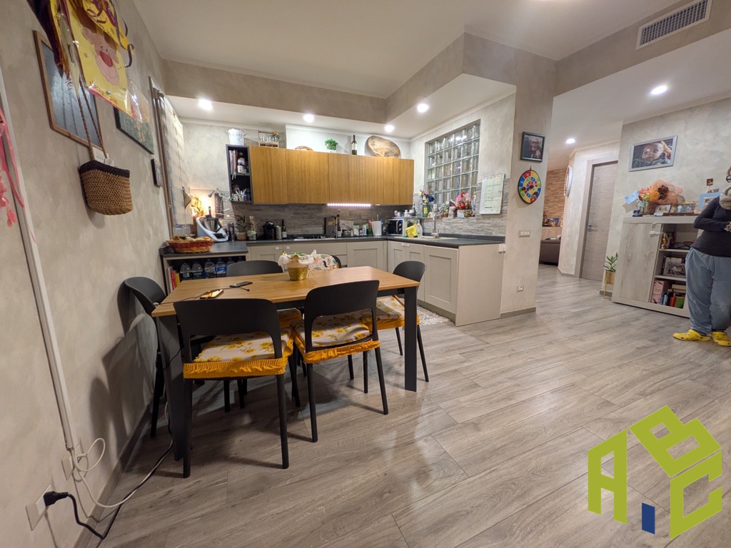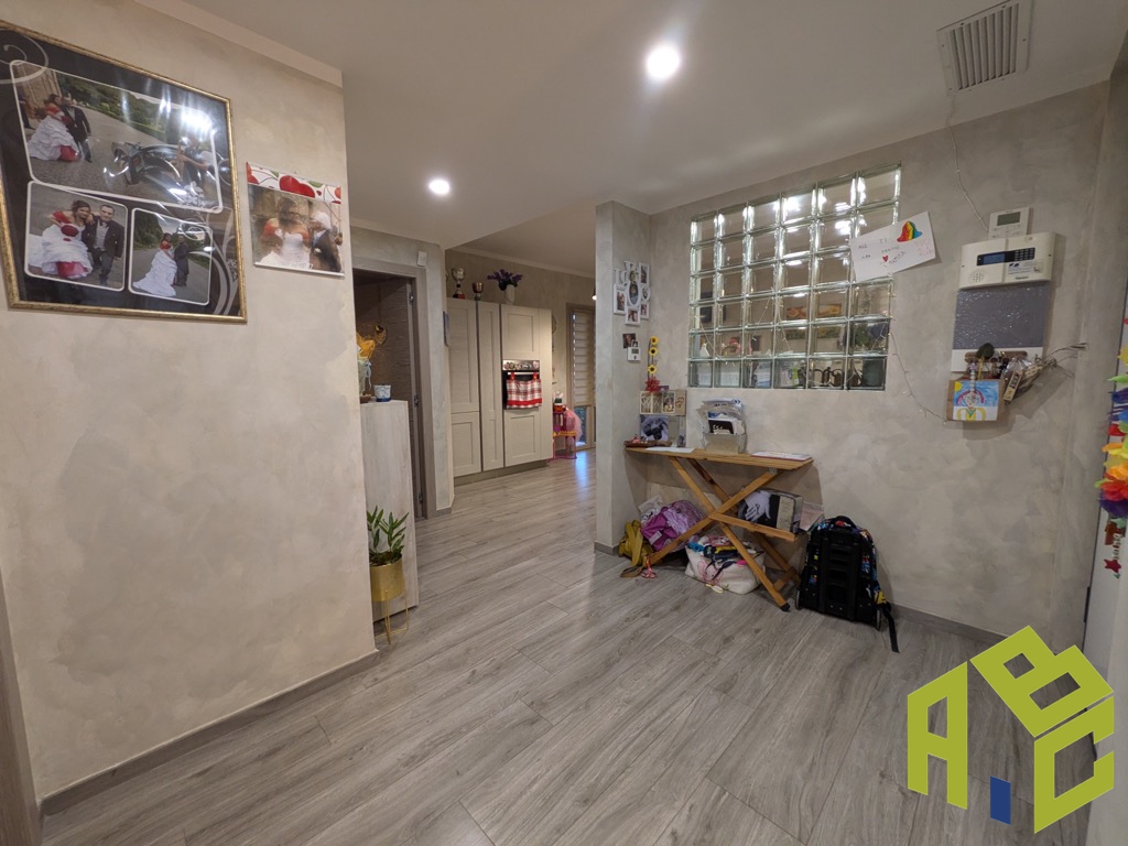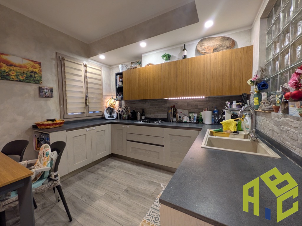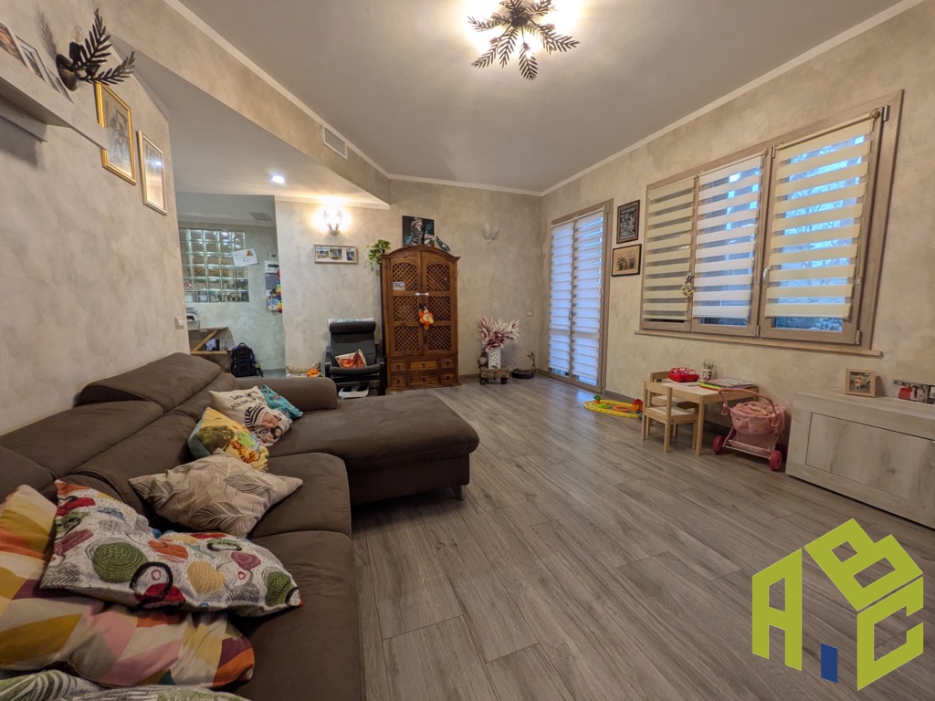 L'ingresso apre su un'ampia sala con balcone; la cucina è abitabile e dotata di secondo balcone dal quale si scende al giardino sul retro, attrezzato con pergola di generose dimensioni, idonea per zona pranzo e soggiorno esterno.