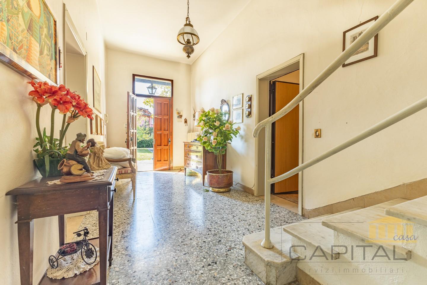 Attualmente è composta da due unità immobiliari indipendenti oltre ad un ampio garage e una importante porzione di terreno ad uso giardino di circa 800 mq. Le unità immobiliari sono cosi composte: Unità ad unico livello, piano terreno composto da ingresso, cucina abitabile, ampio soggiorno, tre camere matrimoniali, due bagni e grande ripostiglio; Unità terratetto, piano terra composto da ampio ingresso con vano scala, cucina abitabile e ampio soggiorno, piano primo composta da disimpegno, quattro camere matrimoniali, studio e grande bagno padronale; Esternamente vi è l'accesso, tramite resede pavimentato, al grande garage di circa 40/45 mq. e circondato per più lati da ampio giardino di circa 800 mq. Le unità immobiliari sono nel suo complesso completamente da rivedere e da rimodernare ma la struttura è in ottime condizioni.