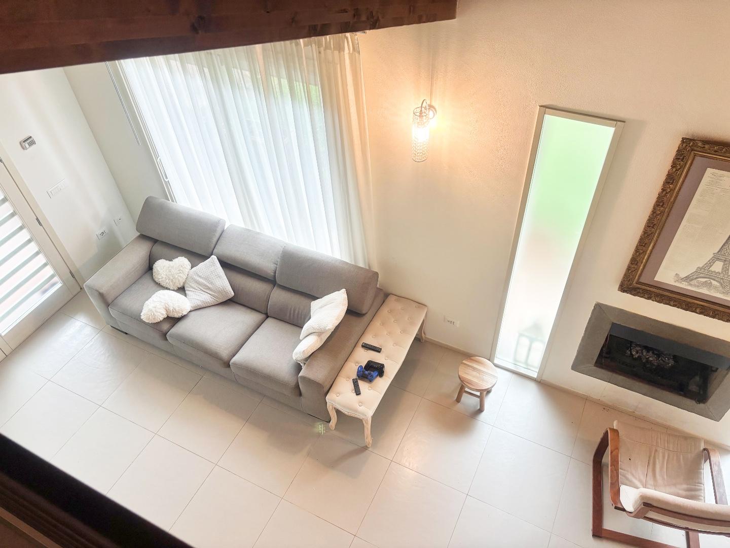 Gli Interni: Eleganza e Luminosità Sviluppata su due livelli principali oltre a un ampio piano seminterrato, la villa è così composta: Piano Terra: L'ingresso apre su un salotto luminoso, caratterizzato da un bellissimo caminetto e numerose vetrate che creano un continuum visivo con il giardino.