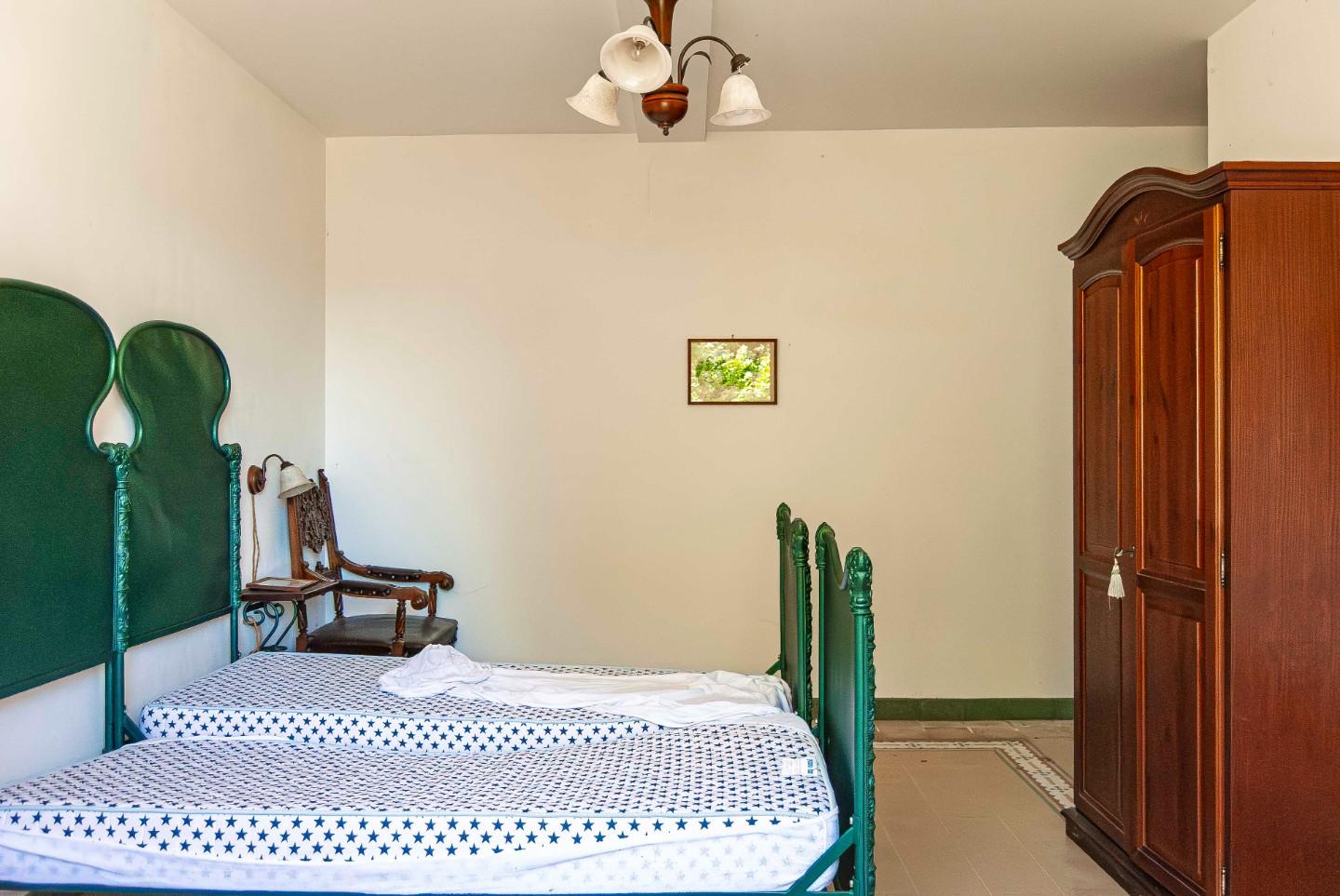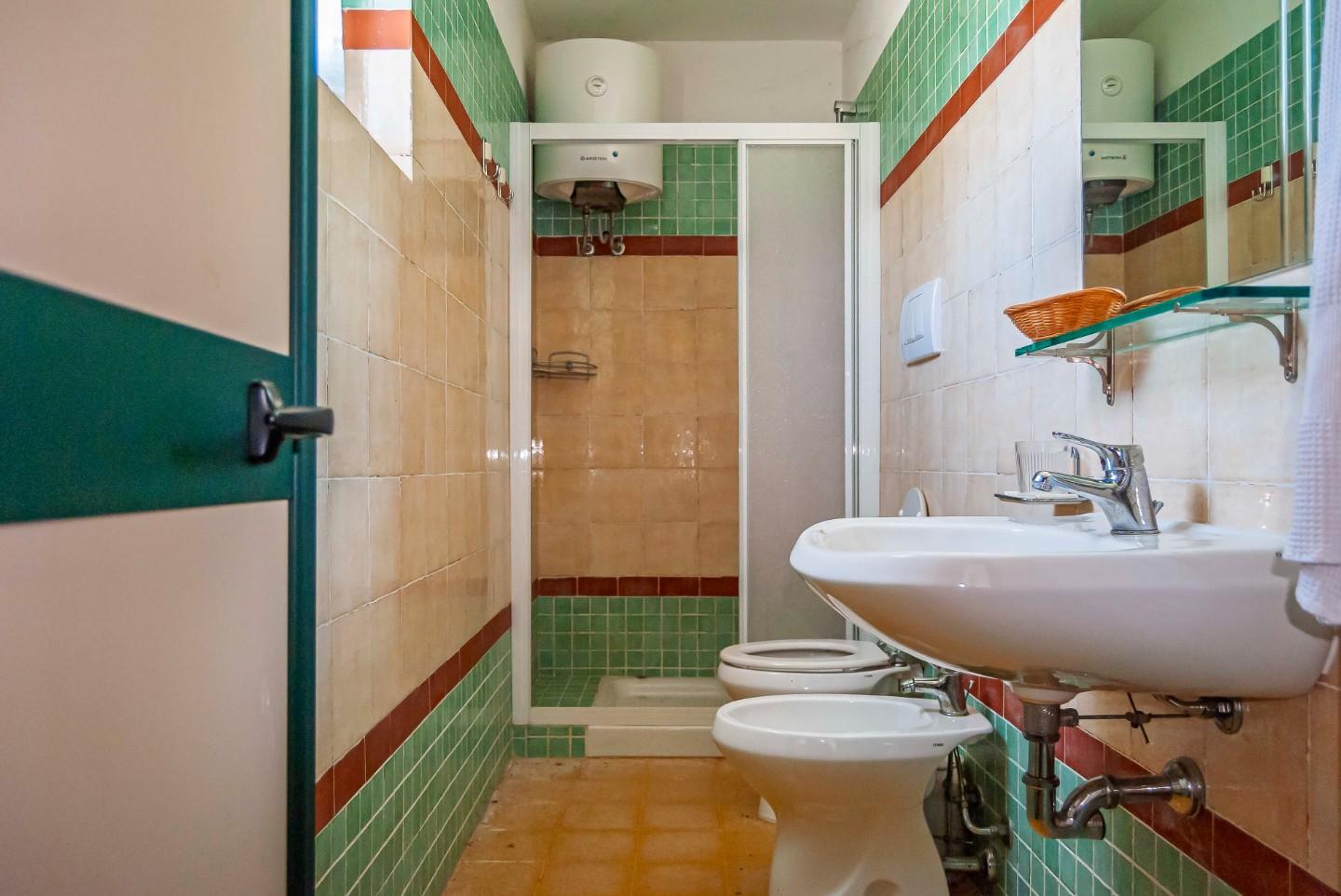 Al piano terra, si trovano un ampio vano, un comodo locale di deposito e due camere da letto, ciascuna con bagno privato.