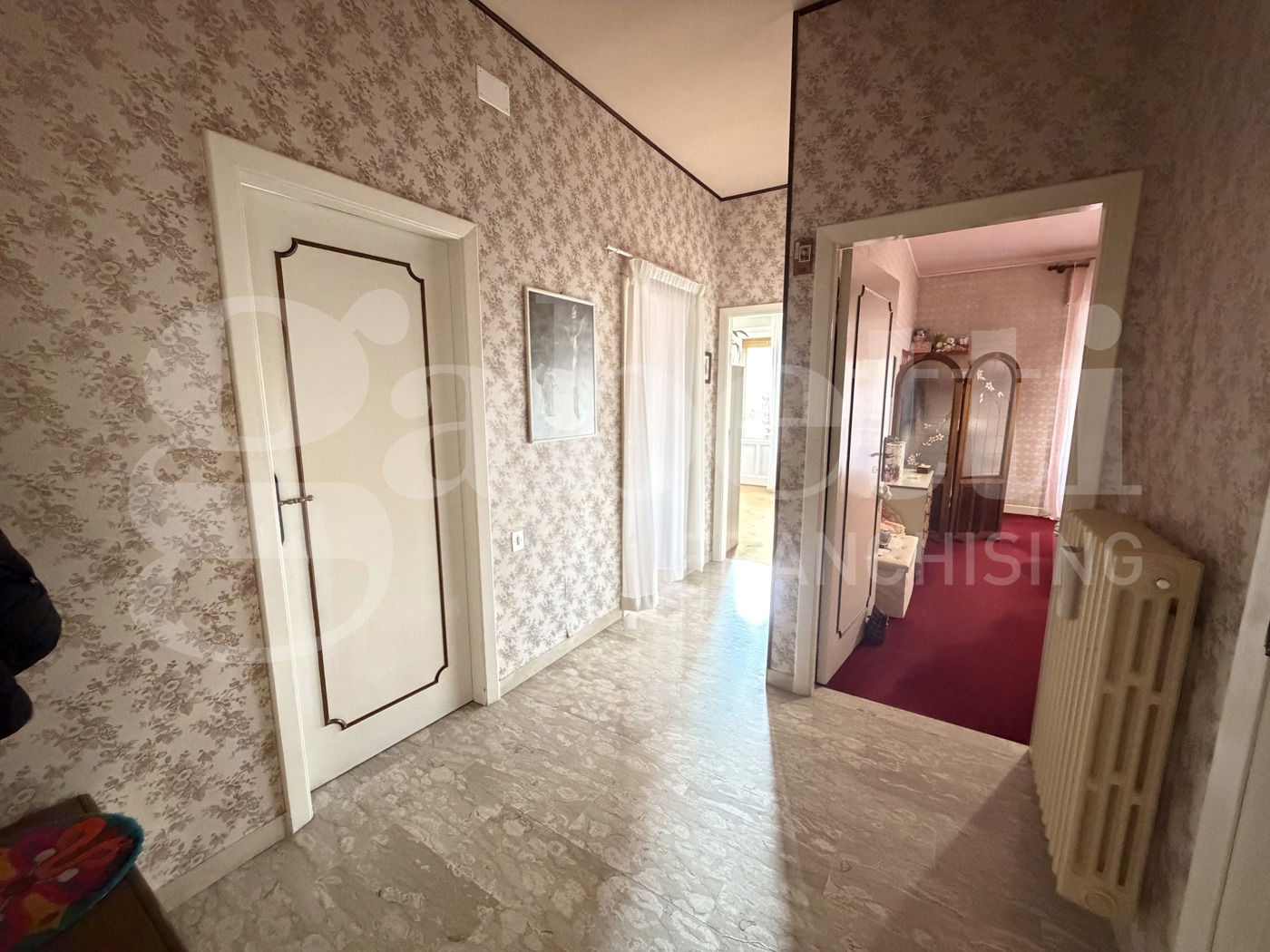 All'ingresso dell'appartamento troviamo un disimpegno dove trovano spazio un ampio salone servito da balcone ed una cucina separata abitabile; un'altro disimpegno ci porta nella zona notte dove trovano spazio tre ampie camere da letto matrimoniali e doppi servizi.