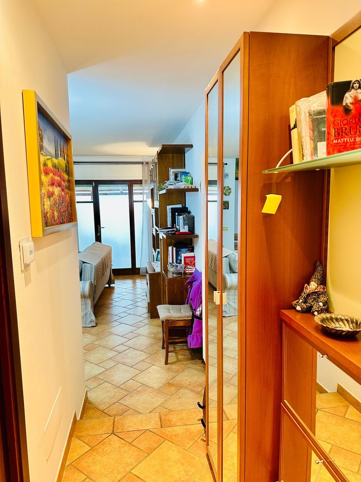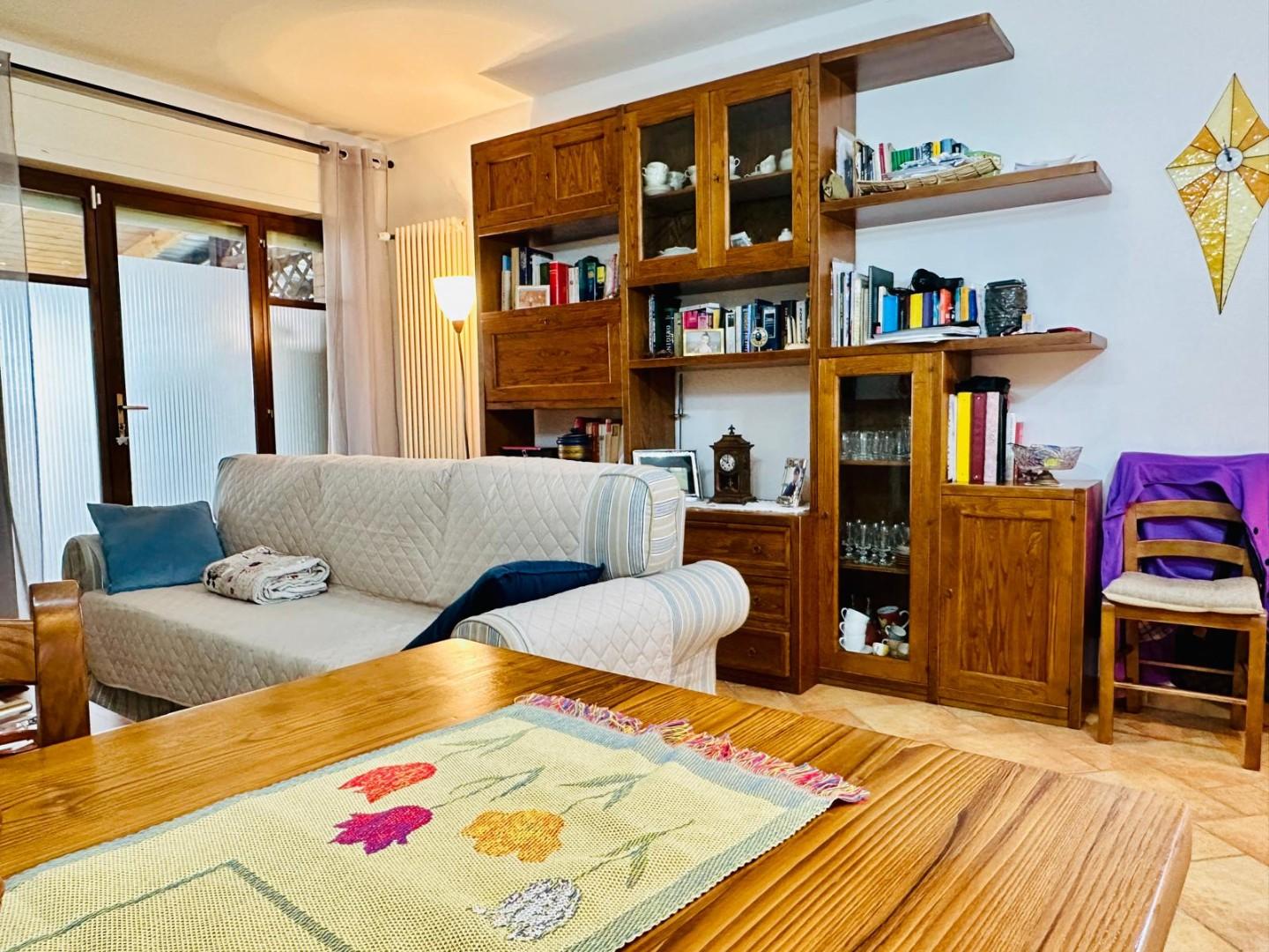 L' immobile dispone di due spazi esterni, un giardino di ingresso e una grande terrazza vivibile con accesso diretto dal soggiorno.