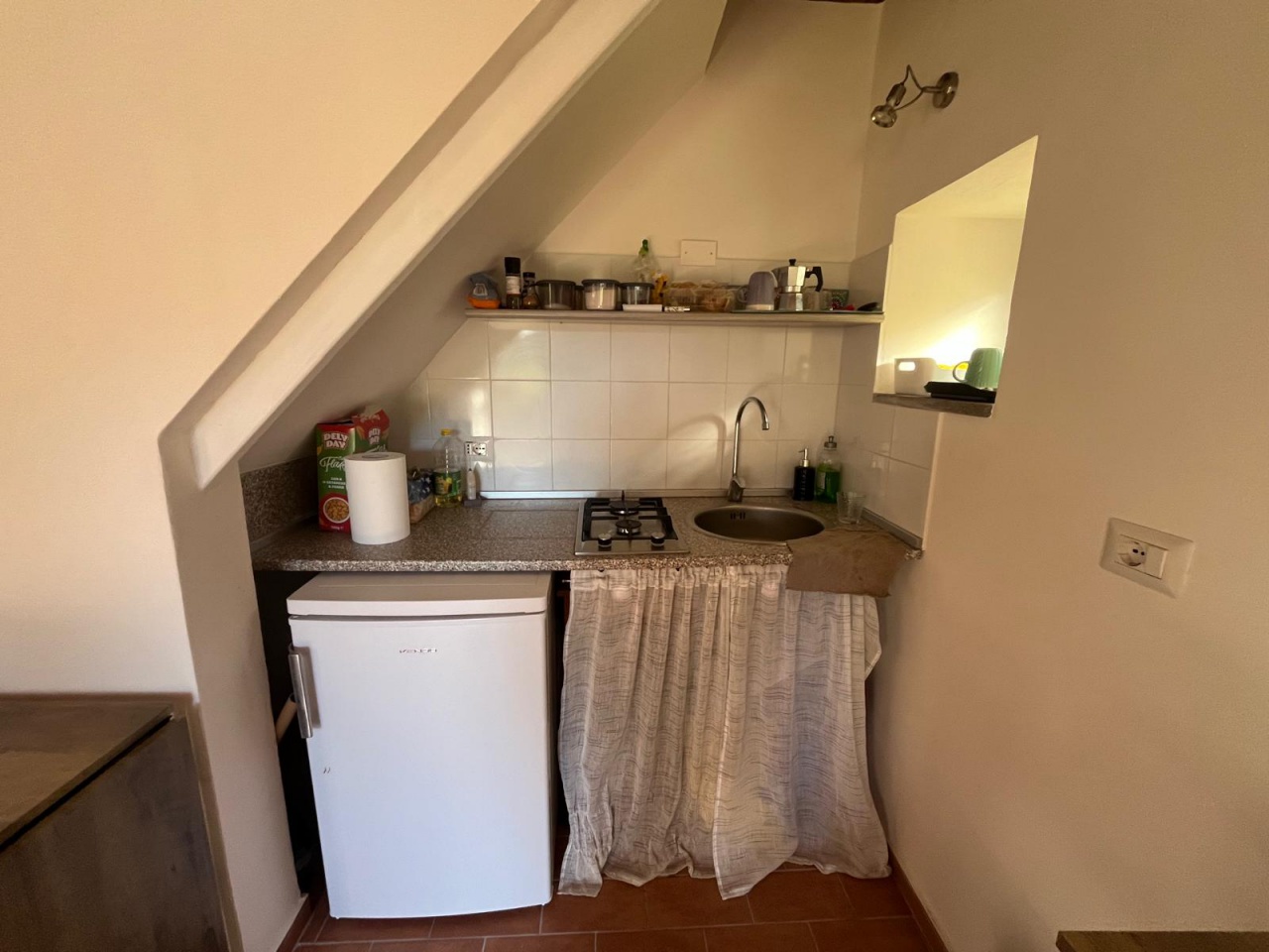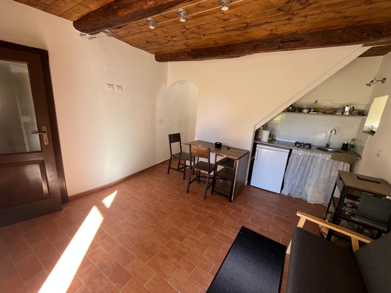 Bilocale ristrutturato in pietra con giardino -- San Quirico (Sorano) In vendita bilocale di 50 mq su due livelli, completamente ristrutturato, situato nel borgo di San Quirico (Sorano). L'immobile presenta una facciata in pietra a vista e un ampio giardino privato di 150 mq, raro nella zona. Composizione: Piano Terra: ingresso con tettoia, soggiorno con angolo cottura, bagno.