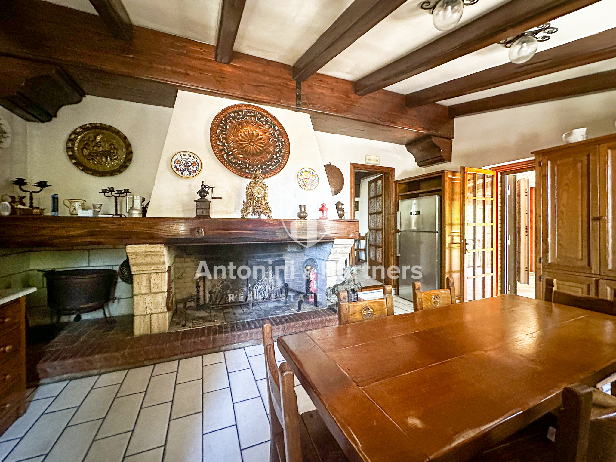 Internamente, ambienti ampi e luminosi, grandi camini in pietra e bagni in marmo.