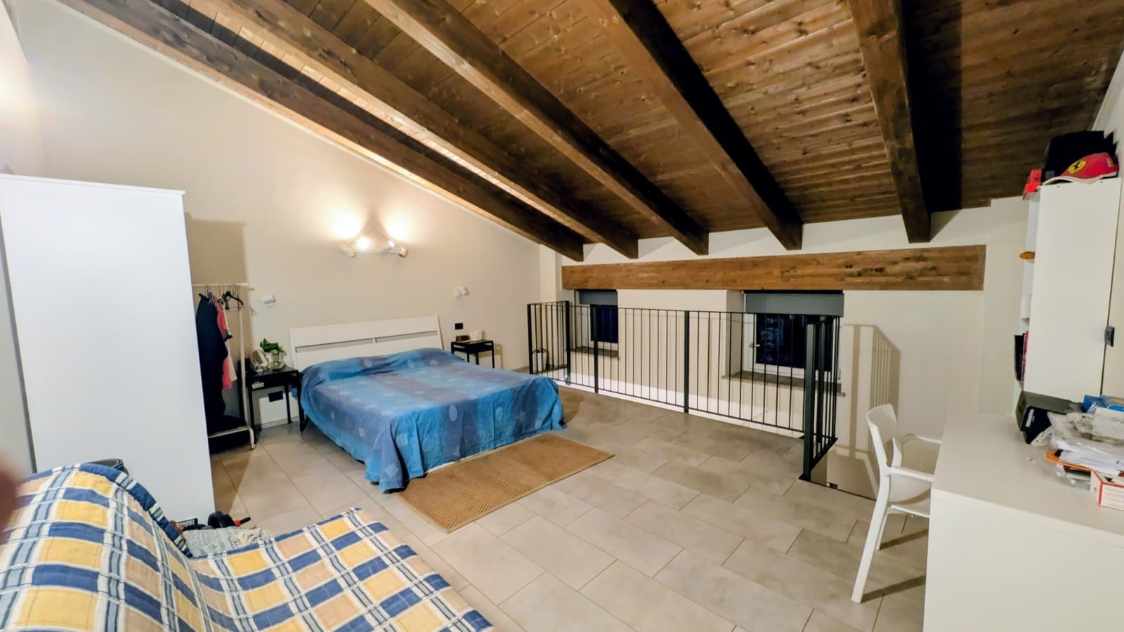 l'appartamtno cosi' composto: ingresso su soggiorno living con parete cucina attrezzata, sevizio con ampia doccia , scala interna di collegamento con la zona notte dove e' presente camera da letto matrimoniale.