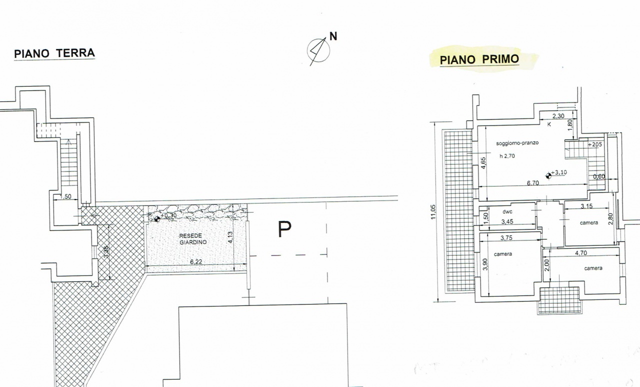 A piano terra un primo ingresso con cancellino che introduce alla resede pavimentata con inoltre un grazioso giardino; la porta blindata si apre su un piccolo disimpegno dove una rampa di scala accompagna all'appartamento.