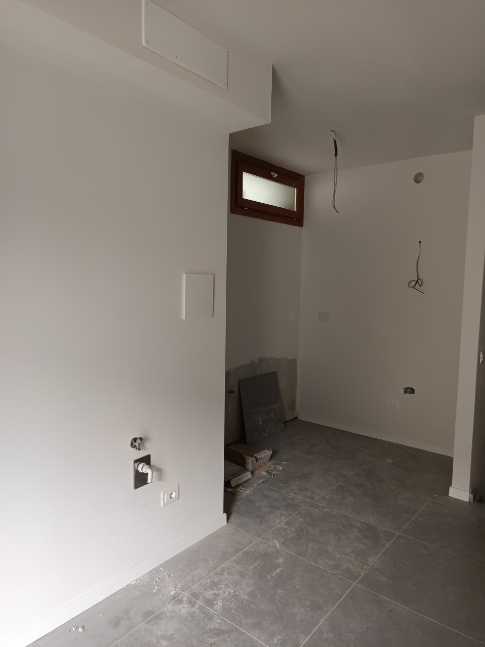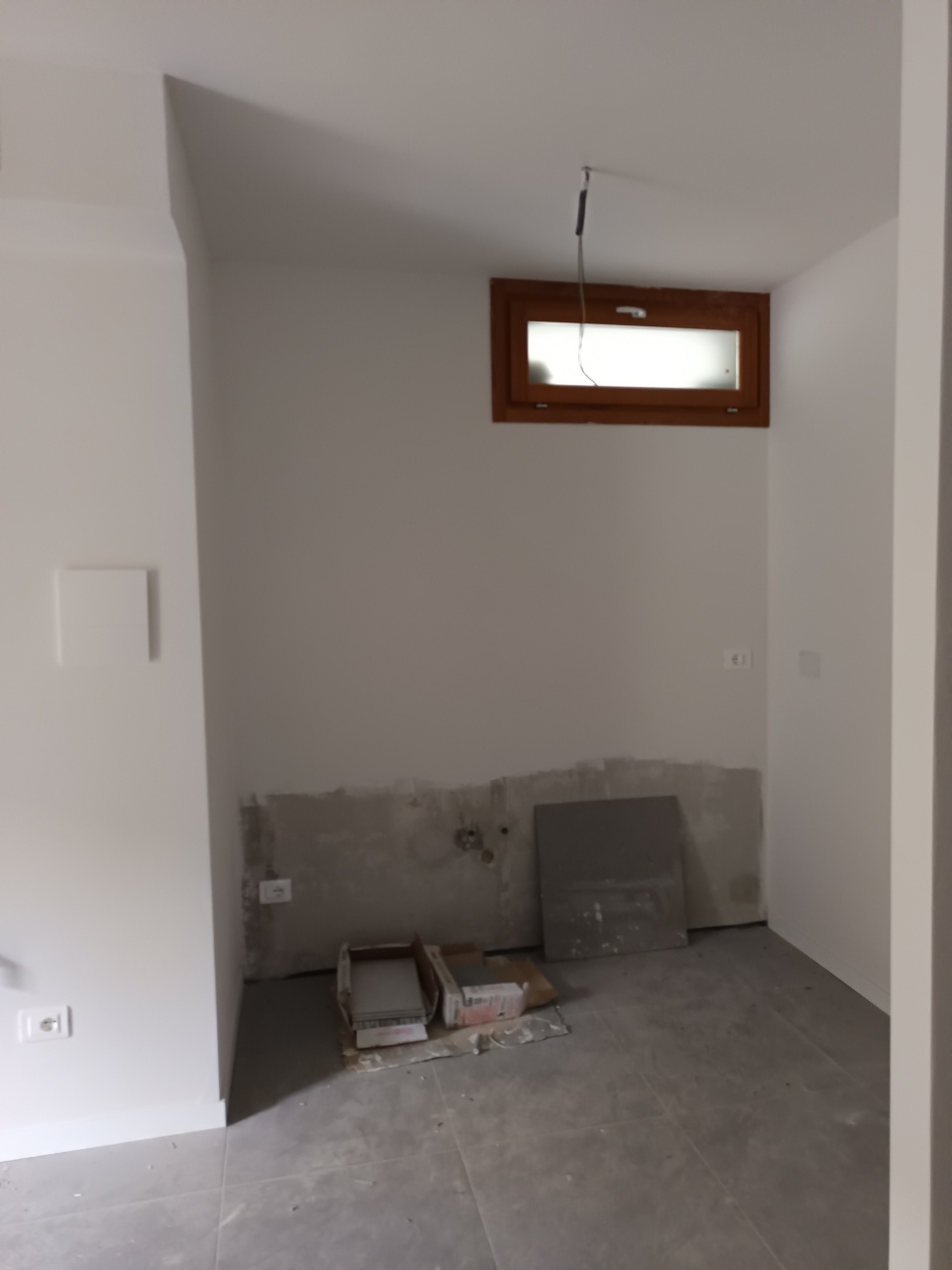 Ci accoglie un open space, soggiorno con cucina a vista affacciato su terrazza sfruttabile, attrezzata con caldaia e pillozzo.
