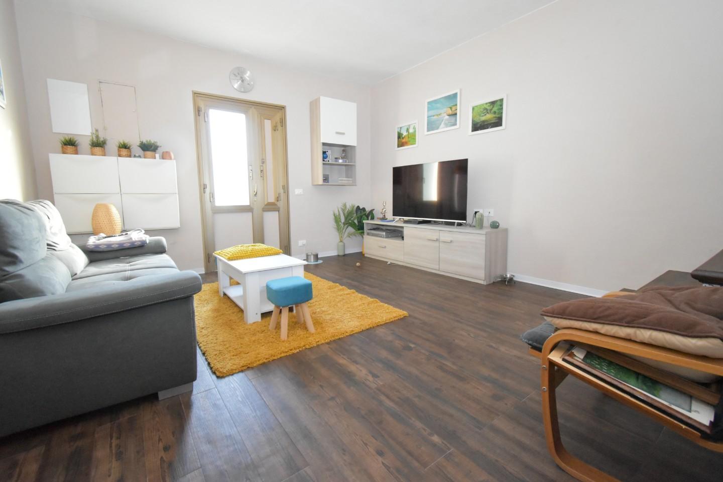 Si compone internamente da ingresso in soggiorno, disimpegno con ripostiglio/lavanderia sottoscala, bagno con doccia e finestra, cucina abitabile con accesso al giardino.
