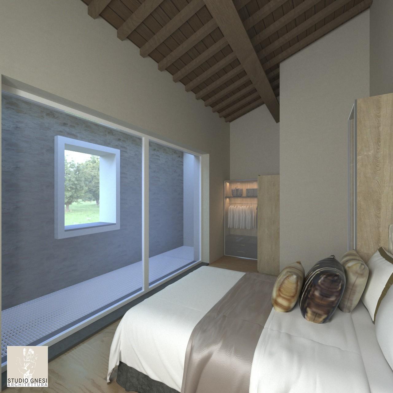 Travi a vista, ampie aperture vetrate e linee pulite donano eleganza e luminosità, mentre i dettagli architettonici contemporanei rendono questa abitazione unica nel suo genere.