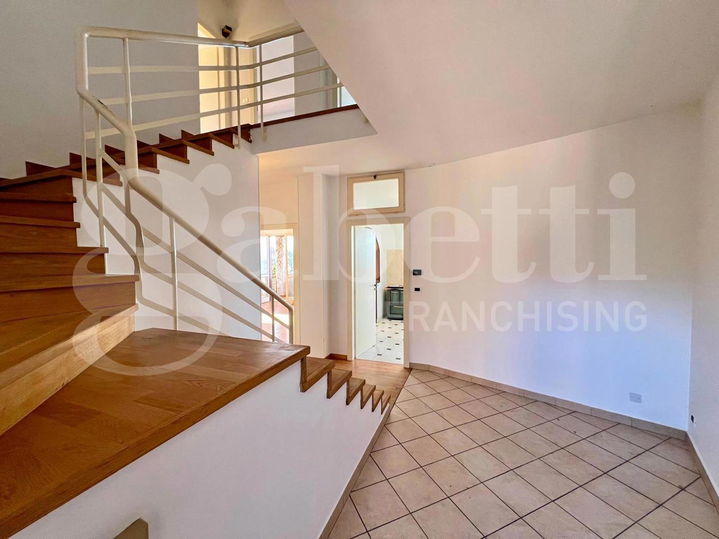 Al piano terra lingresso conduce ad un soggiorno accogliente affiancato dalla cucina abitabile che hanno sfogo diretto sul terrazzo panoramico; questo piano completato da un pratico ripostiglio oltre a un bagno dalle generose dimensioni.