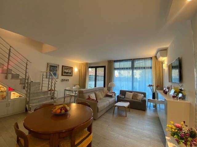 Ameglia bassa, vicino a Bocca di Magra, in bel complesso residenziale, proponiamo terratetto ristrutturato su 3 livelli: -al piano terra ingresso, cucina, sala, bagno e uscita sul giardino eslusivo recentemente piastrellato.
