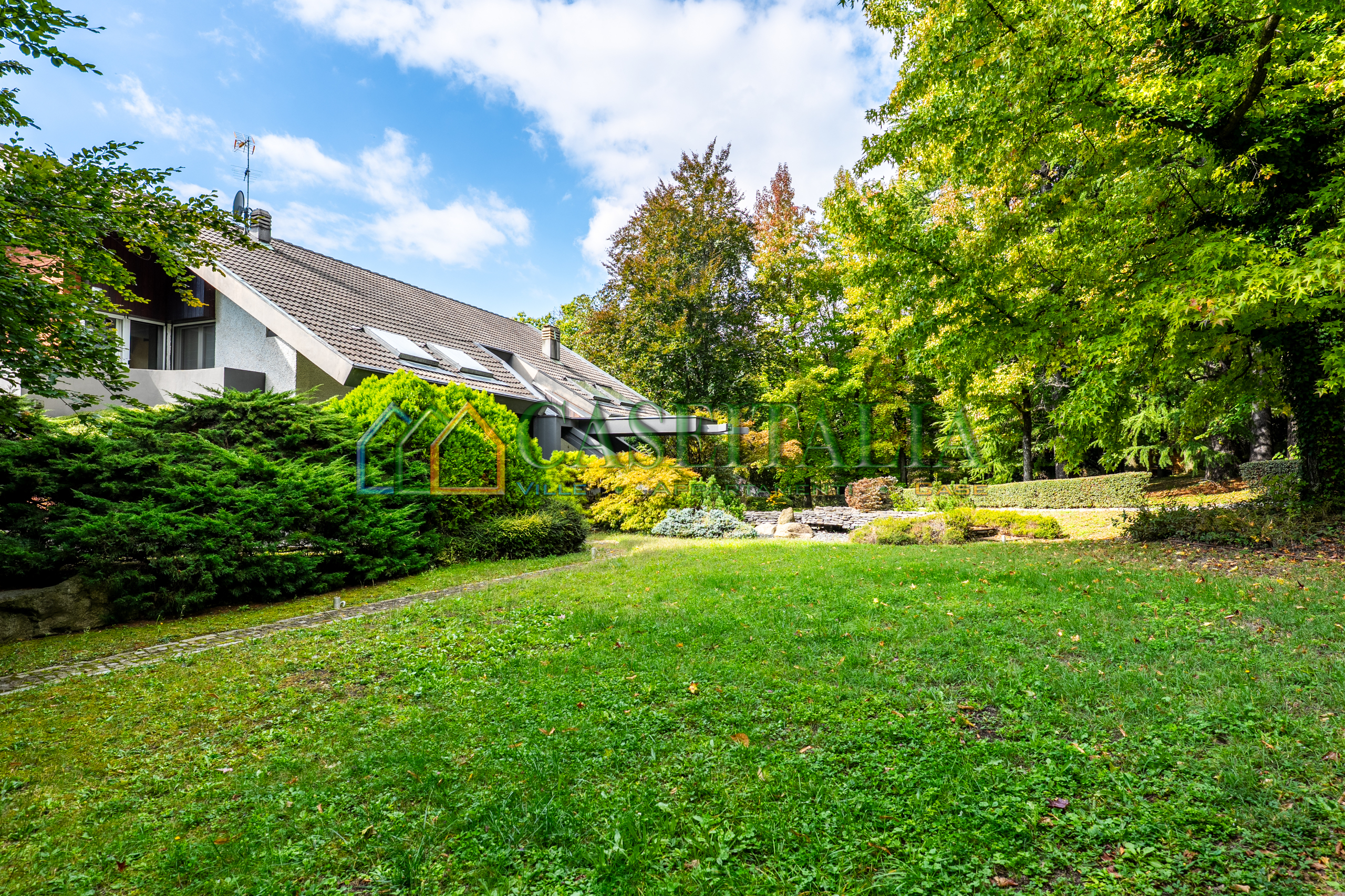 Allesterno, lesteso parco privato rappresenta un valore aggiunto inestimabile: vi si trovano eleganti pini, alberi da frutto, una zona barbecue perfettamente attrezzata per cene allaperto, e una pratica struttura per il ricovero attrezzi.