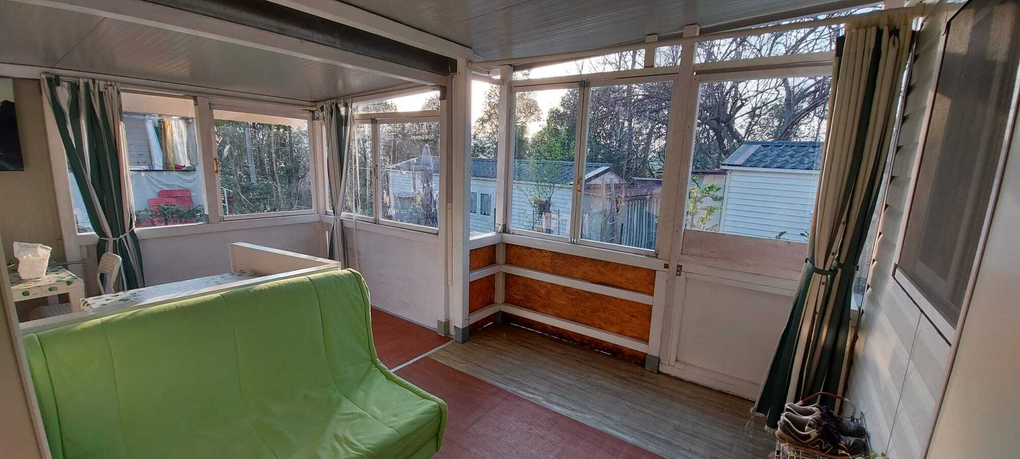 tutte le finestre sono dotate di zanzariere; riscaldamento mediante pompa di calore di recente installazione (2024). il canone di locazione annuo per la piazzola e' di circa 3'000? e comprende l'utilizzo gratuito della piscina.