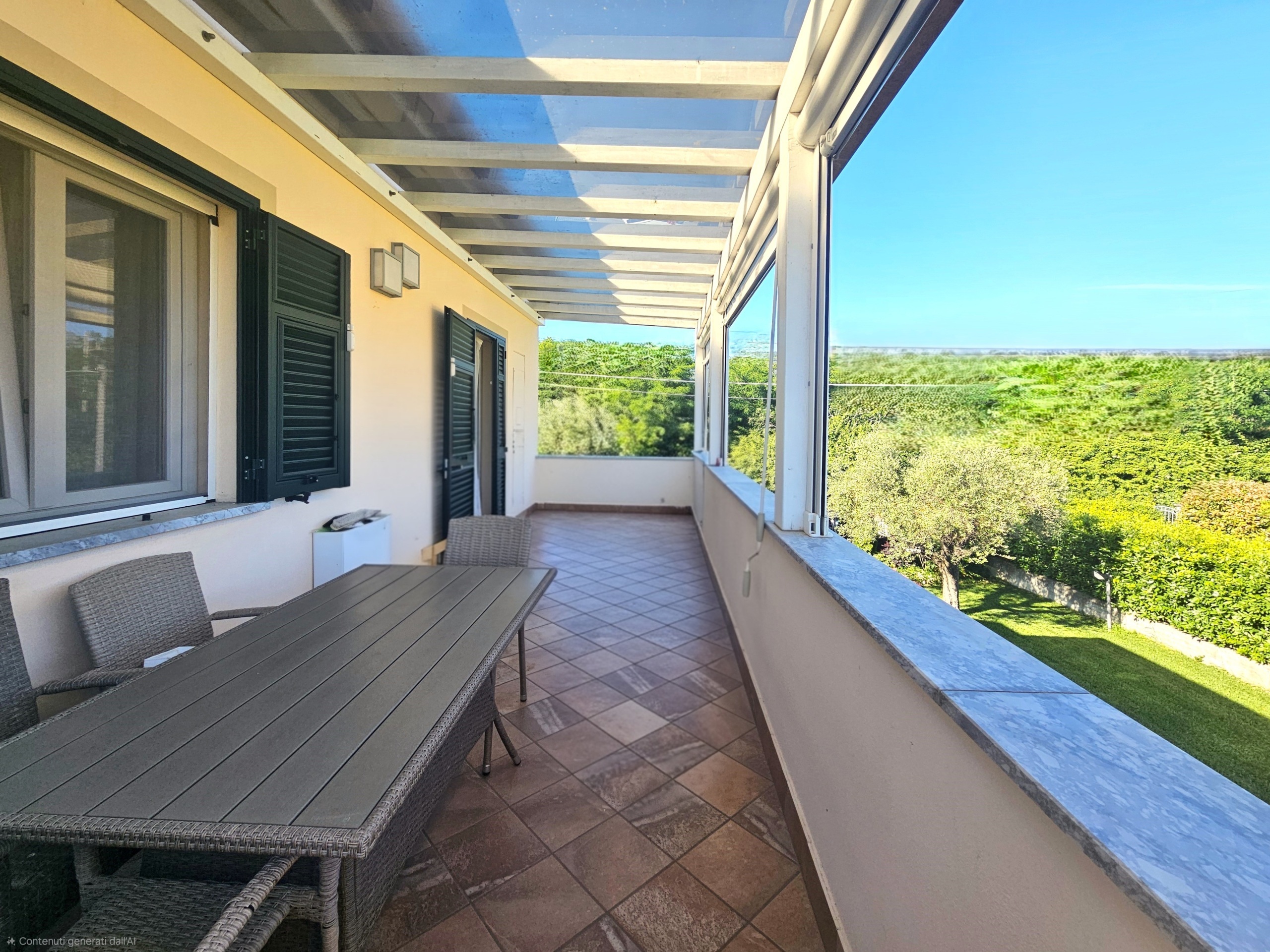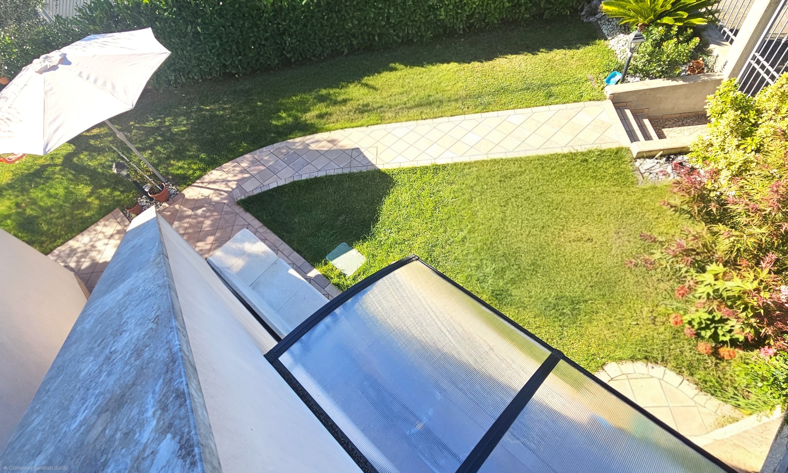 Completano la proprietà il ripostiglio al piano terra, il giardino di circa 180mq con impianto di irrigazione e i due posti auto sotto l'abitazione.