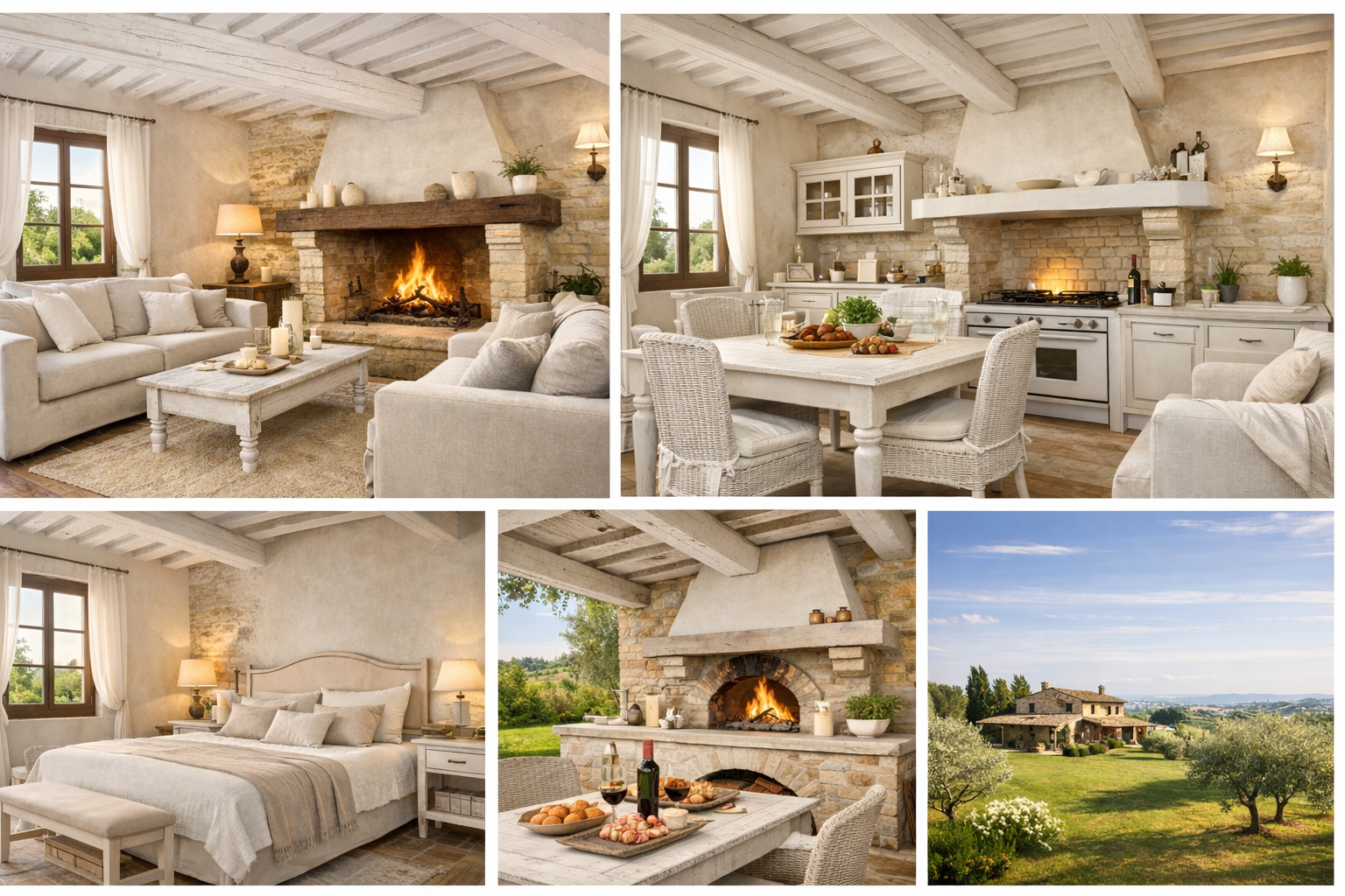The house preserves the authentic character of a traditional Marche farmhouse, with features such as exposed beams, fireplaces and spacious interiors.