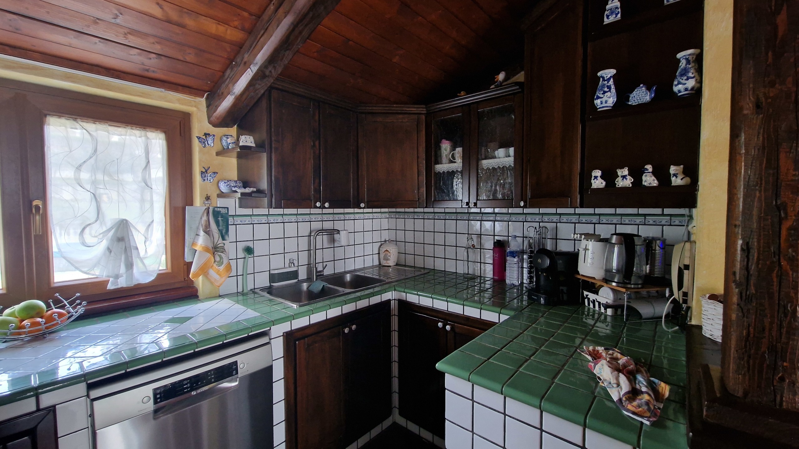 L'immobile si sviluppa tutto sul primo piano, con ingresso dal giardino ed una comoda scala per accedere all'abitazione che si presenta con un ampio e luminoso soggiorno, un grande camino, un balcone ed un balconcino ed un bellissimo angolo cottura in muratura.